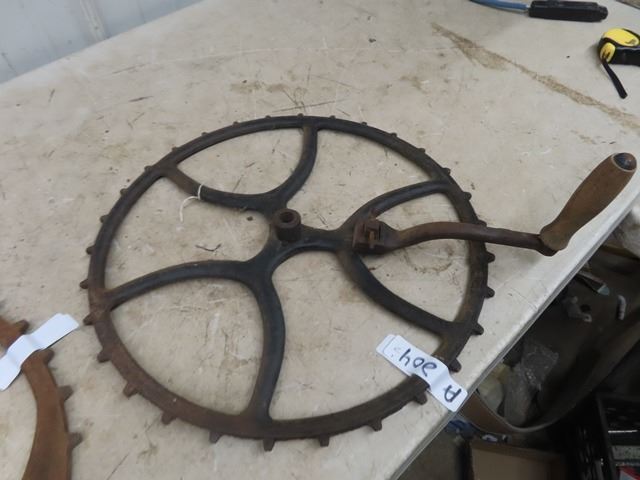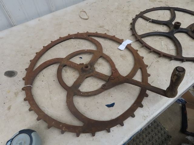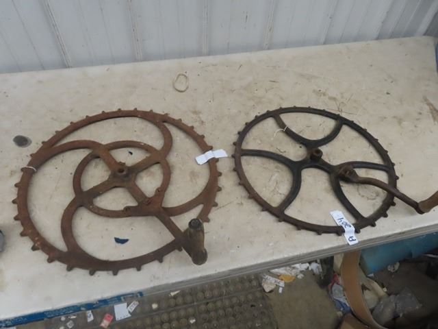 2 Manual Crank Industrial Wheels 1) 20" round 1) 17.5" round