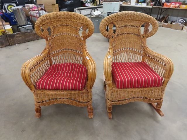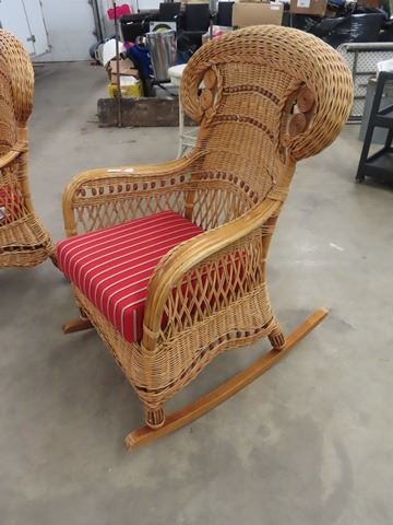 2 Matching Wicker Chairs 1) Rocker & Ottoman & Stand