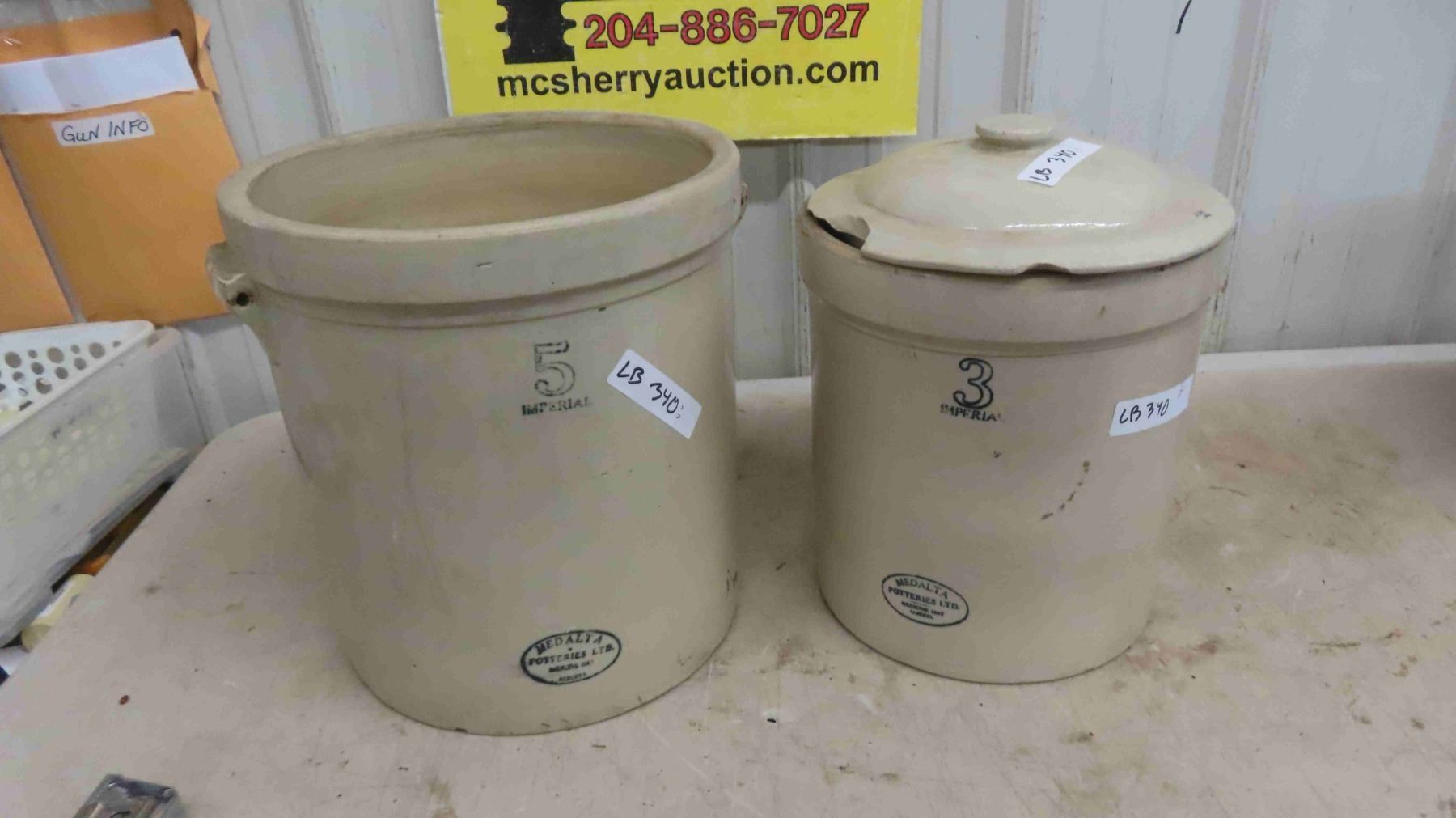 2 Medalta Crocks 5 Gallon & 3 Gallon - 3 Gallon Has Lid