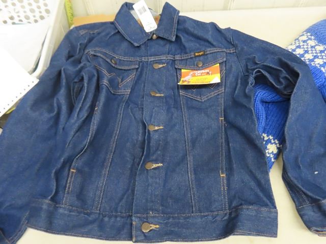 2 Medium Wrangler Denim Jackets - New Old Stock & Wool Sweater - Sz Small , I think