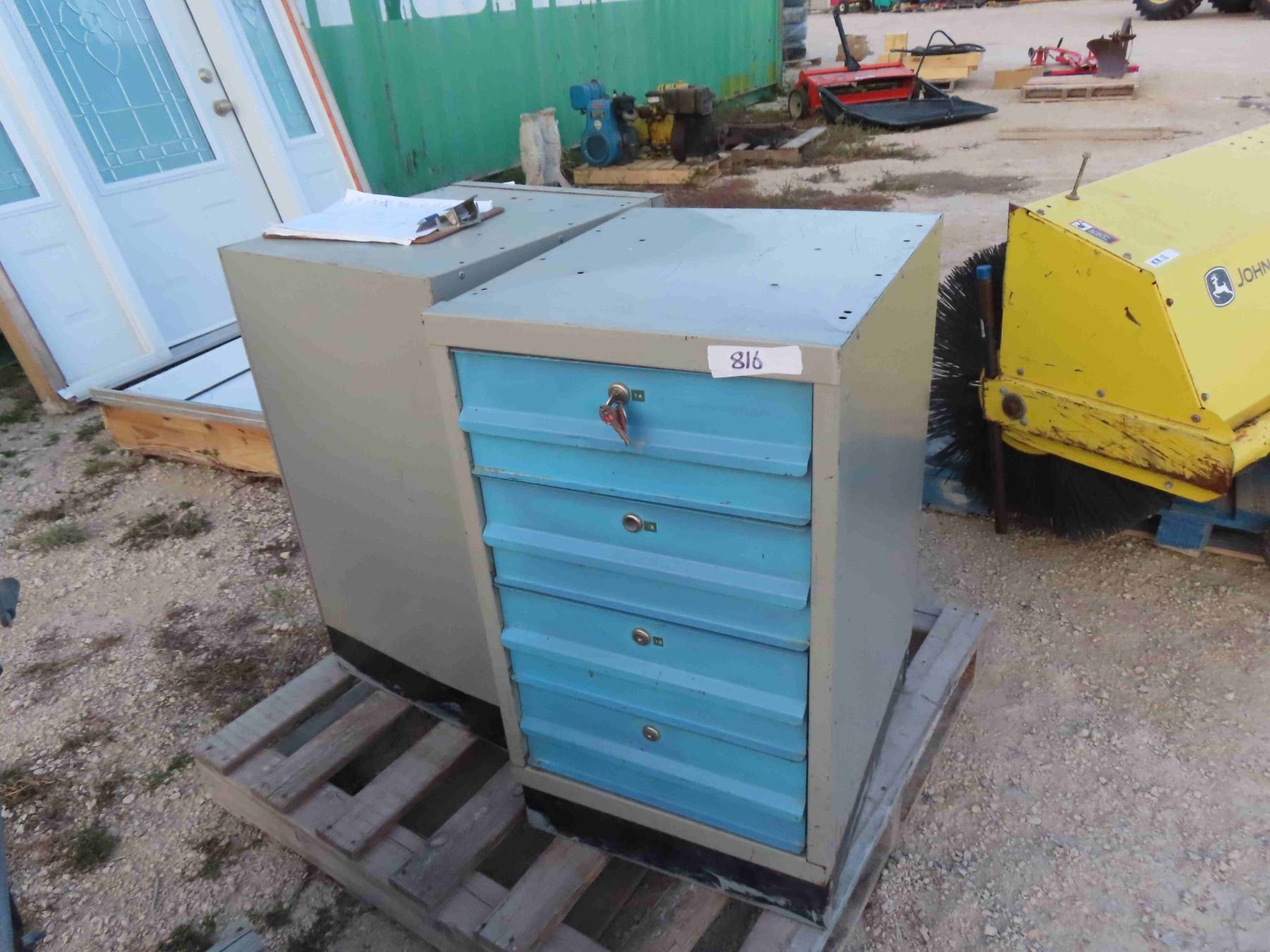 (2) Metal 5 Drawer Locking Cabinets 32'' x 18'' x 21''