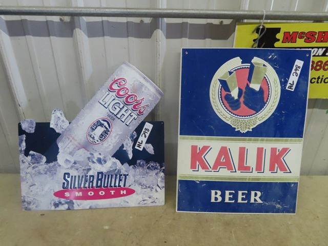 2 Metal Beer Signs 1) Coors Light 18" x 18" & 1) Kalik Beer 15" x 20"