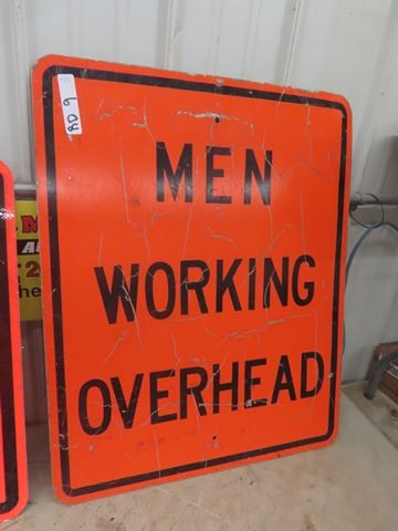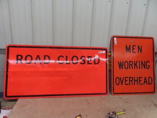 2 Metal Construction Signs 1) Road CLosed Sign 24" x 27" & 1) Men Working Overhead 24" x 29"