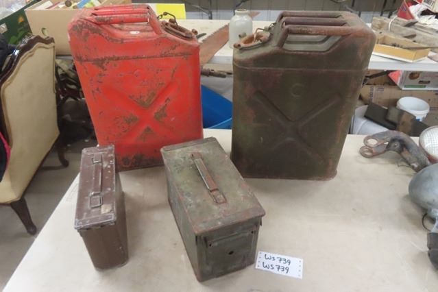 2 Metal Jerry Cans, 2 Ammunition Boxes