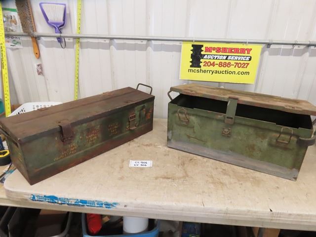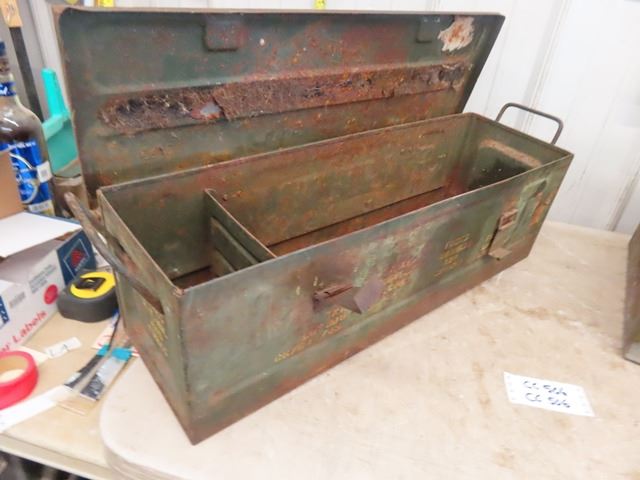 2 Metal Military Tool Boxes ; 10" x 15" x 24" & 9" x 9" x 28"