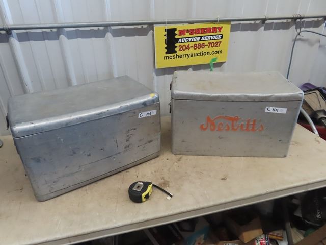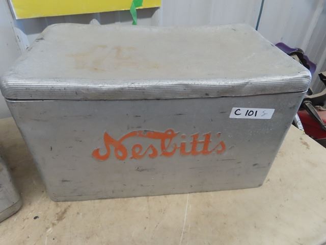 2 Metal Picnic Cooler  1) Embossed Nesbitt Adv 12"H 22"W 13"D