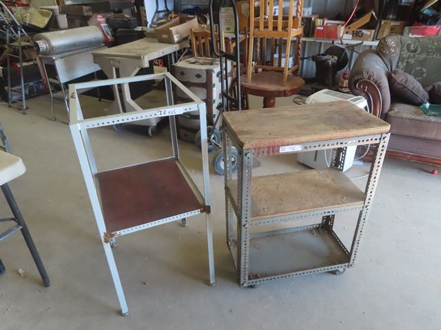 2 Metal Power Tool Stands ; 1) 38" x 18" x 20" , 1) 34" x 24" x 12" on Casters