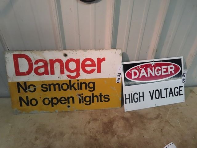 2 Metal Signs 1) Danger- No Smoking 12" x 21" & 1) Danger High Voltage 10" x 14"