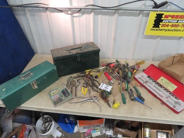 2 Metal Tool Boxes, 1/2" Socket Set, Pliers Cutters, Screwdrivers & New Impact Sockets