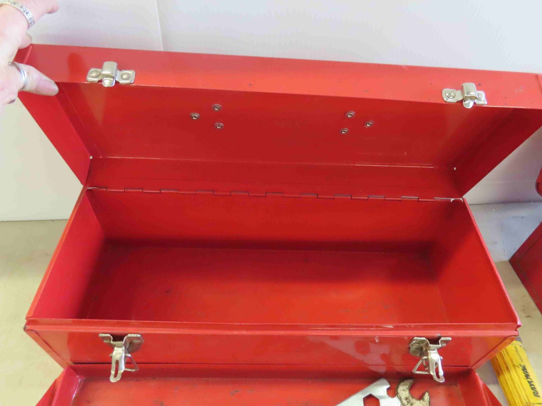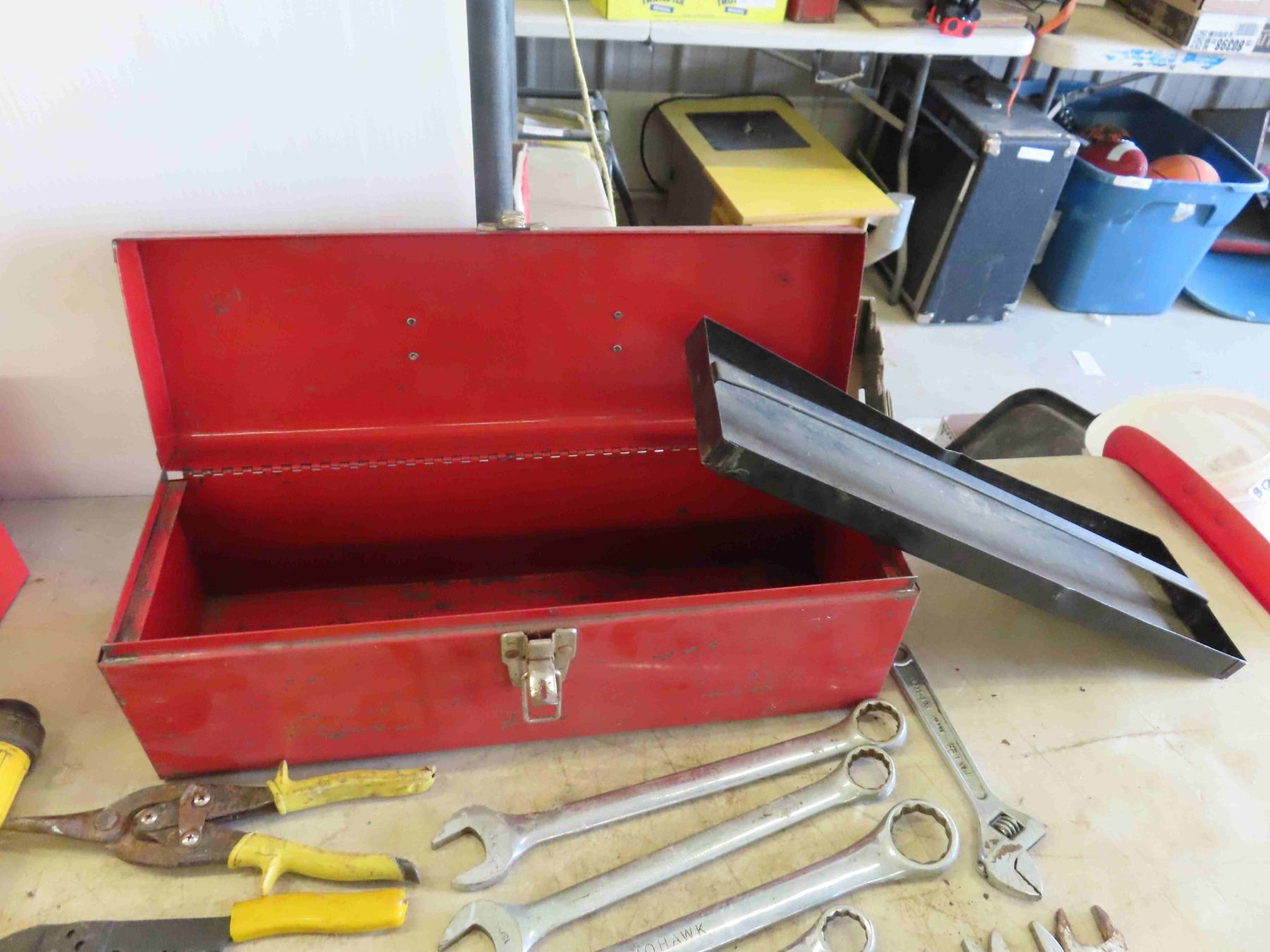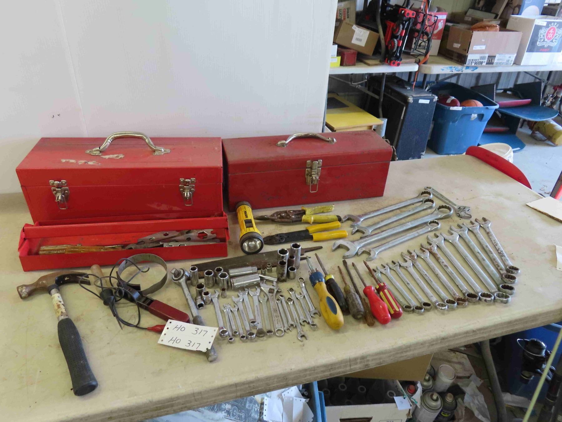 2 Metal Tool Boxes with Wrenches, Screwdrivers, Snips, Ratchet, Sockets, Filter Wrench & More