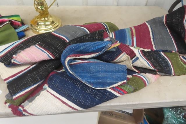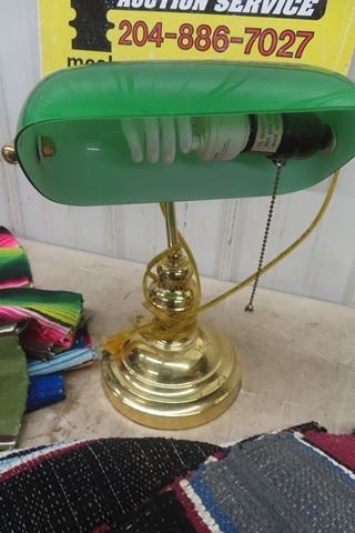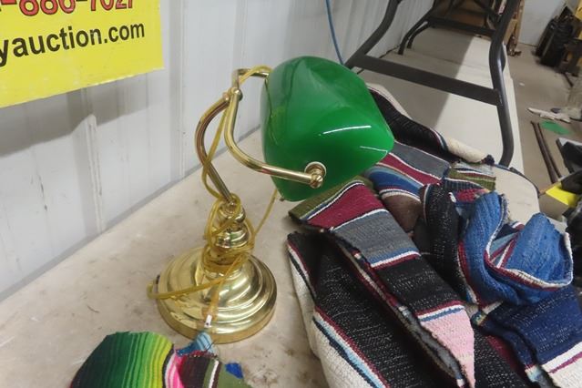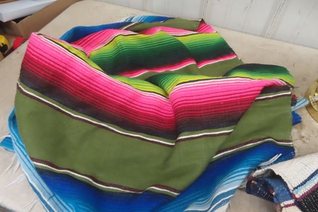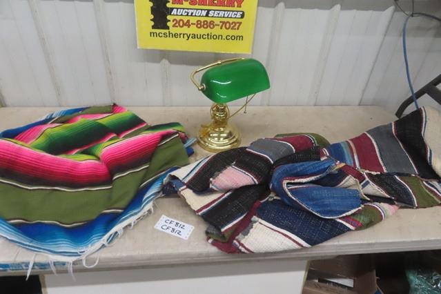 2 Mexican Blankets and Green Glass Shade Table Lamp