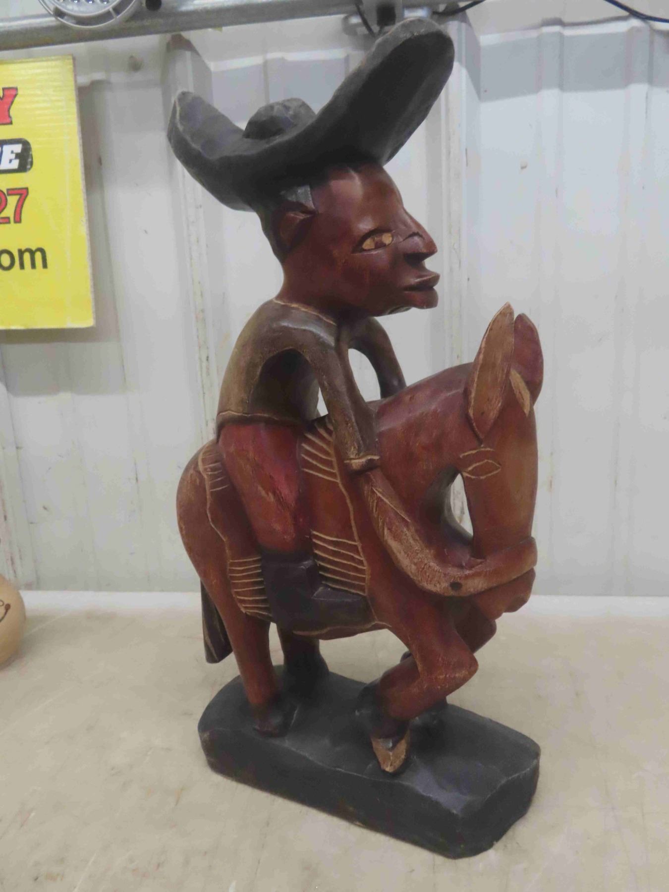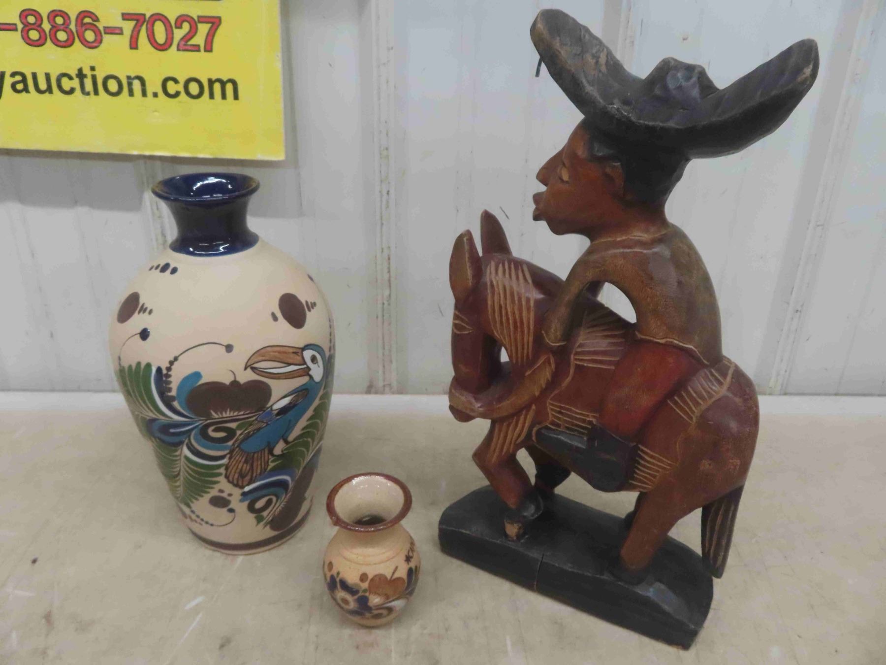 2 Mexican Vases (Tallest is 12'') , Burro/Man Statue 16 1/2'' Tall