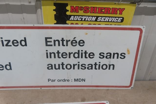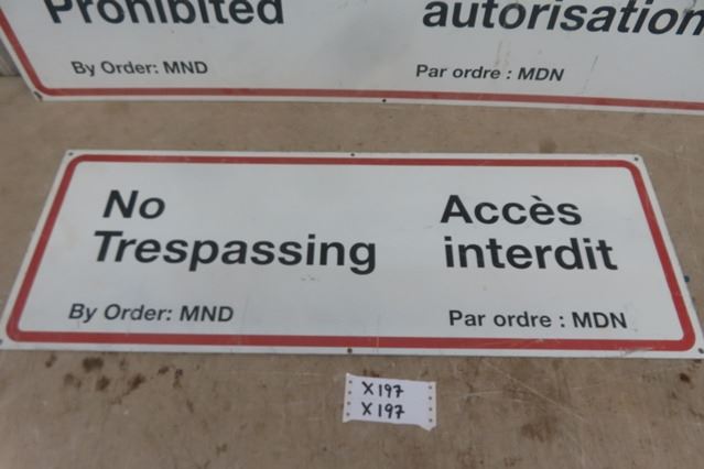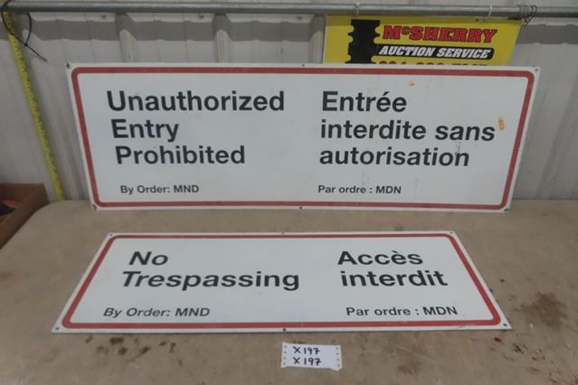 2 Military Metal Signs ; 'No Trespassing' + ' Unauthorized Entry Prohibited' - Largest 15.5" x 45.5"