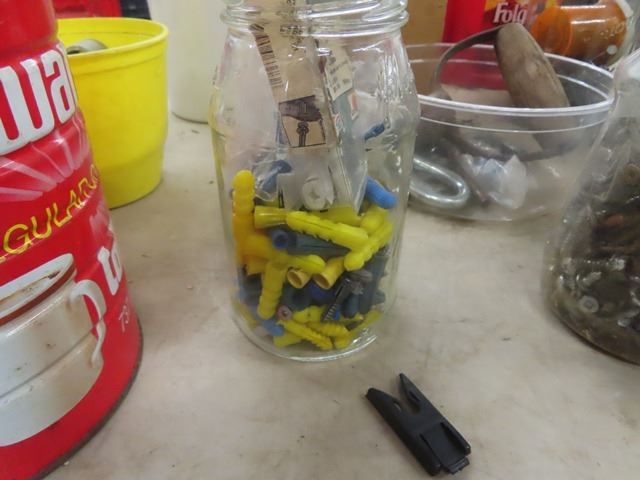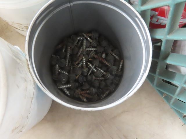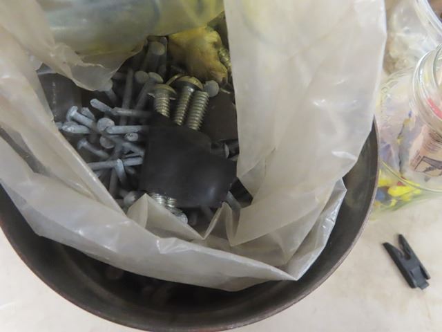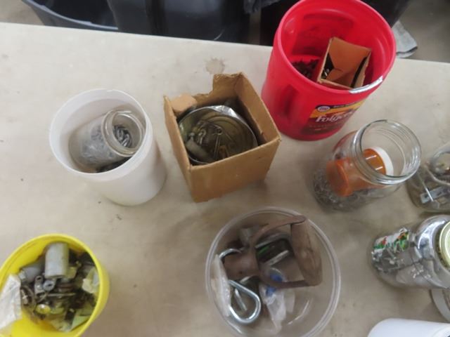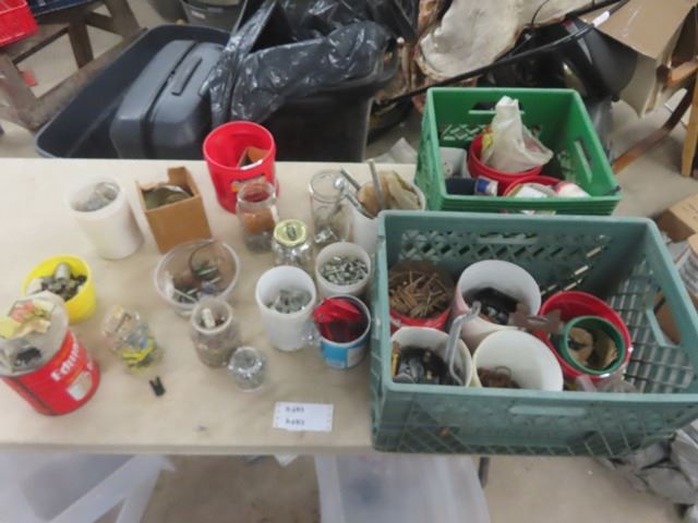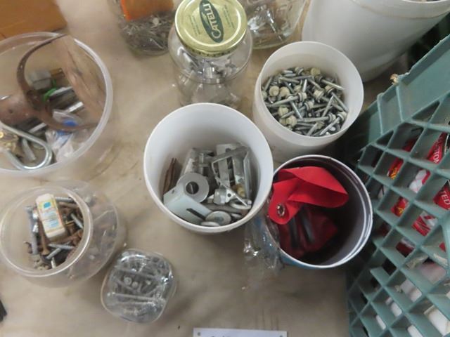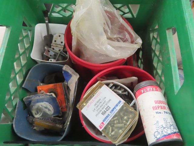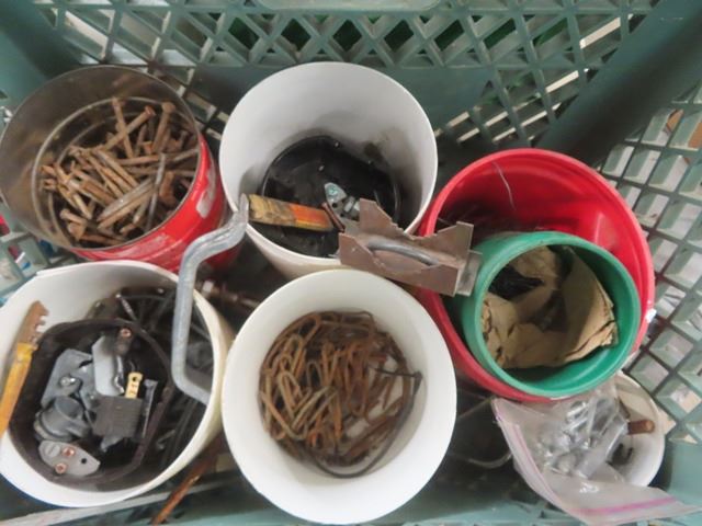 2 Milk Crates with Nails, Screws, Wall Plugs, Hose Clamps + Other Hardware