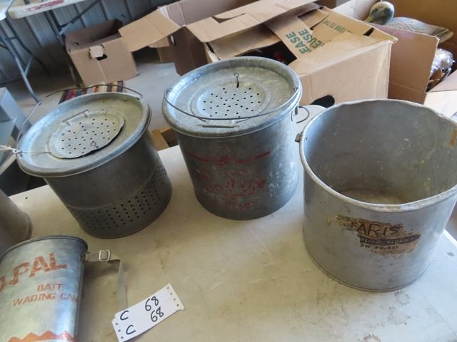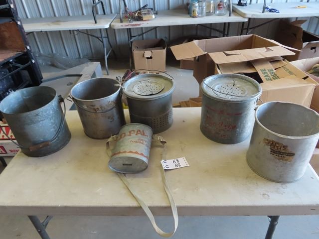 2 Minnow Buckets, 3 Galv Pails, & Bait Wading Can
