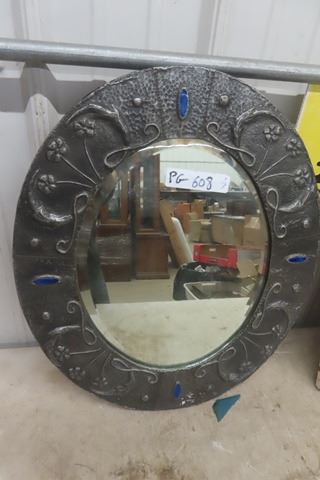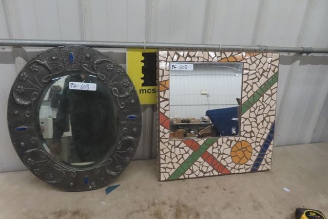 2 Mirrors ; Oval 18" x 21" Metal Over Wood & Ceramic Tile 20.5" x 20.5"