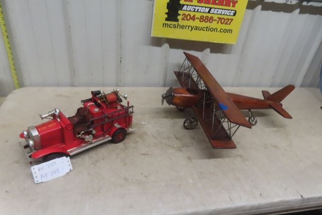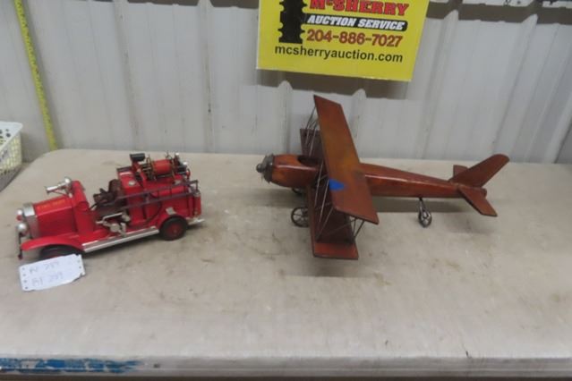 2 Model Displays Firetruck + Plane 6" x 8" x 15"