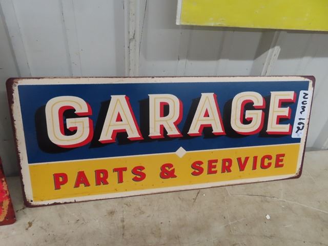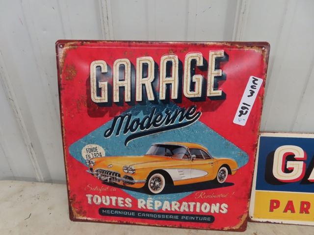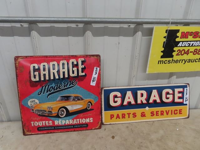 2 Modern Metal Garage Signs 1) 15" x 15" & 1) 8" x 20"