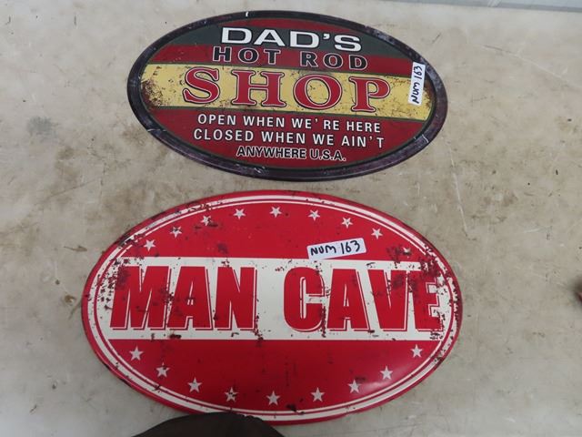 2 Modern Metal Signs - Man Cave, Hot Rod Shop 13" x 22"