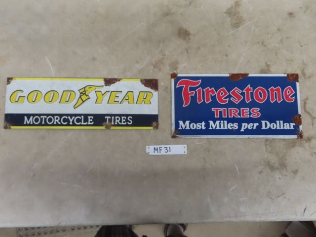 2 Modern Rustic Style Signs ; Goodyear 5.5" x 16" & Firestone 7" x 14"