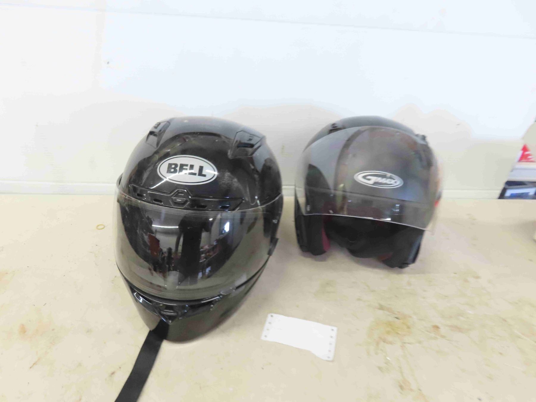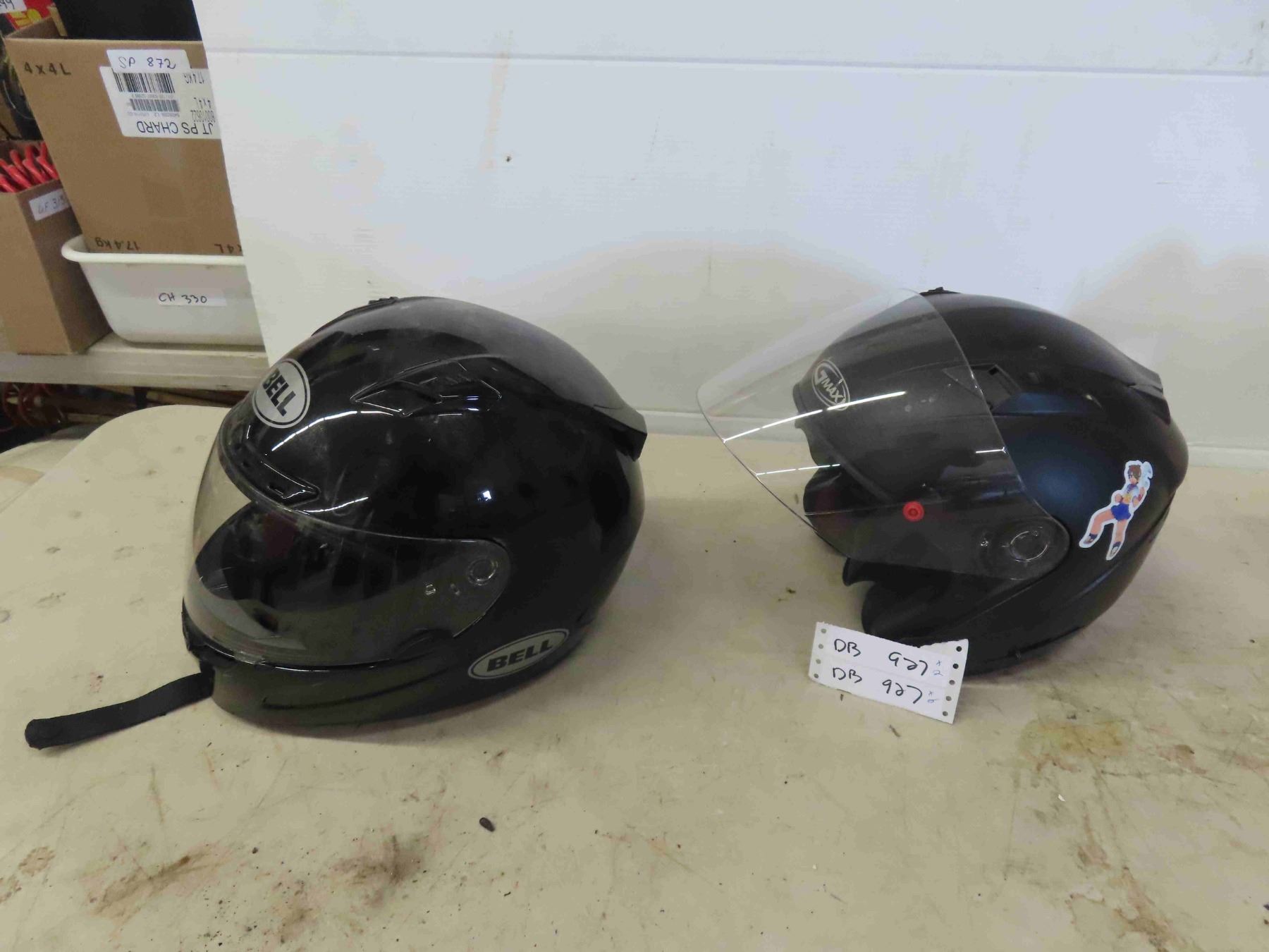 2 Motorcycle Helmets : Bell Size Large, G Max Size Large