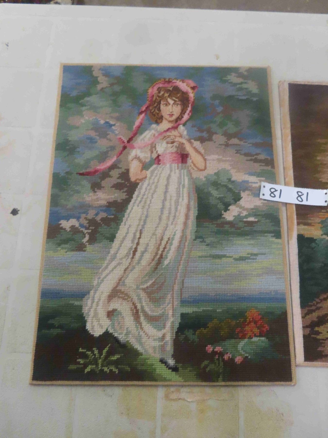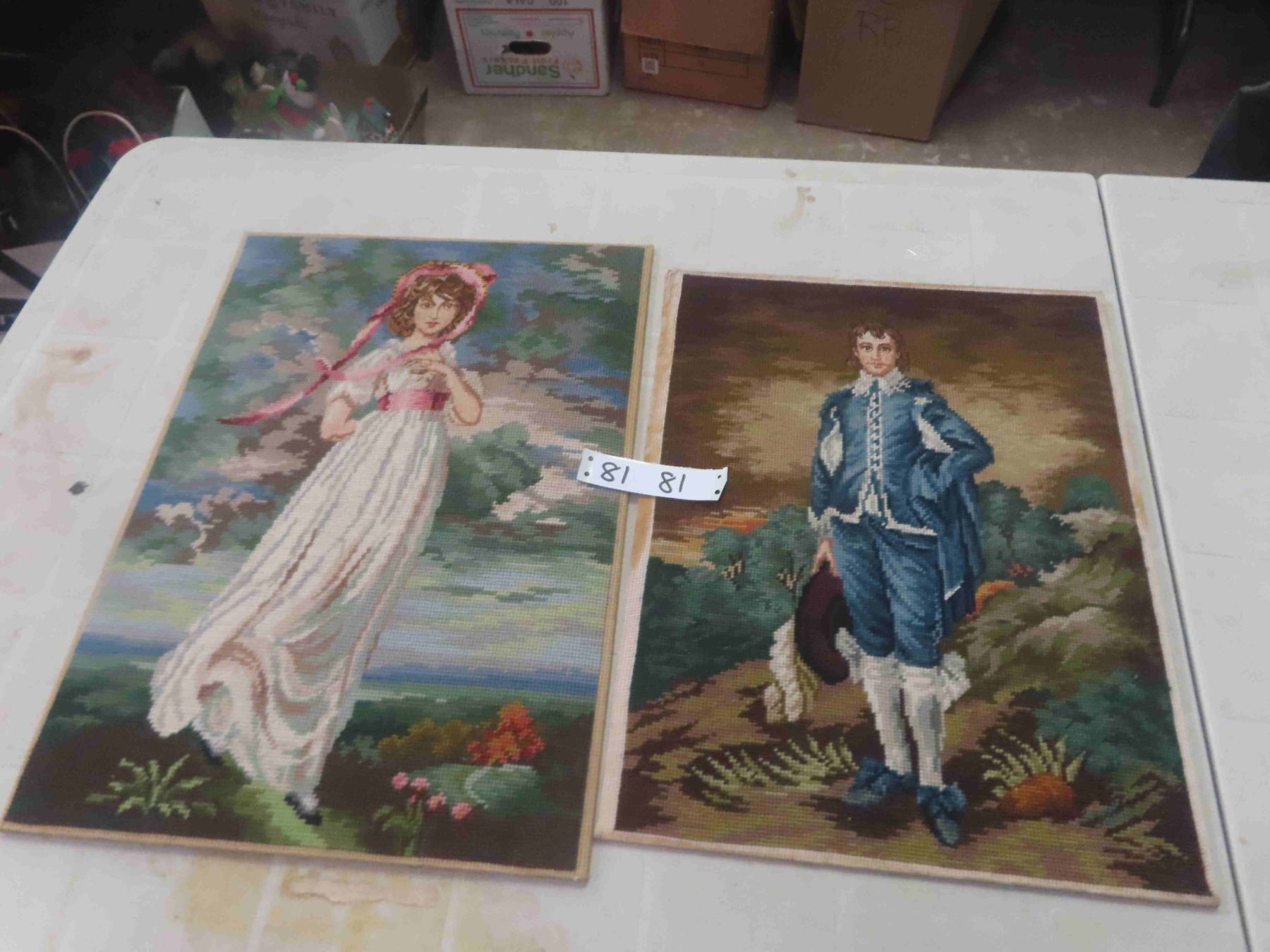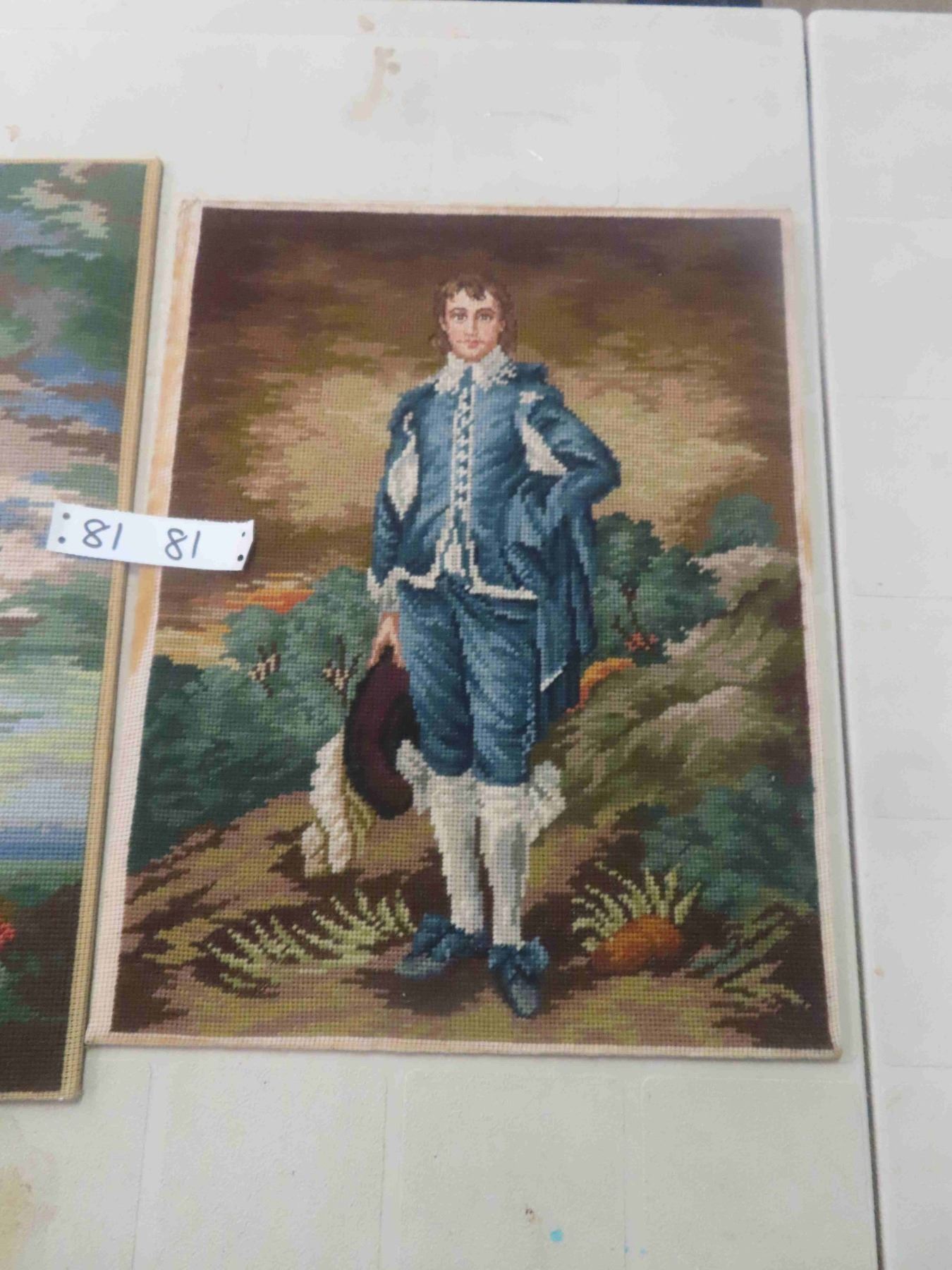 2 Needle Point Pictures 'Pinky' 14'' x 20'' & 'Blue Boy' 17 1/2'' x 14''