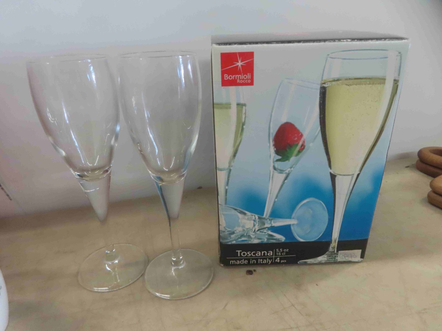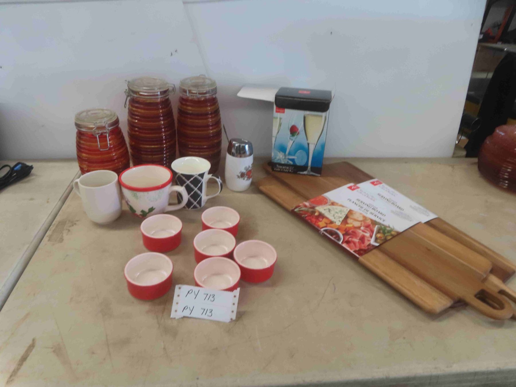 2 New Acacia Serving Boards, 4 Toscano Wine Glasses, 3 Piece Canister Set & More