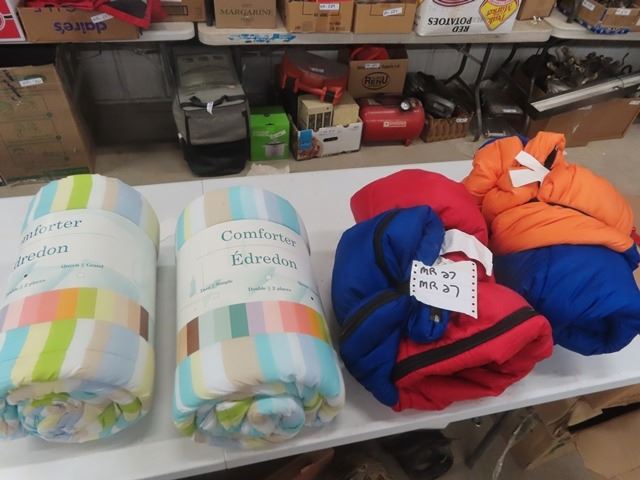 2 New Comforters One Fits a Queen, One Fits a Double and 2 Sleeping Bags