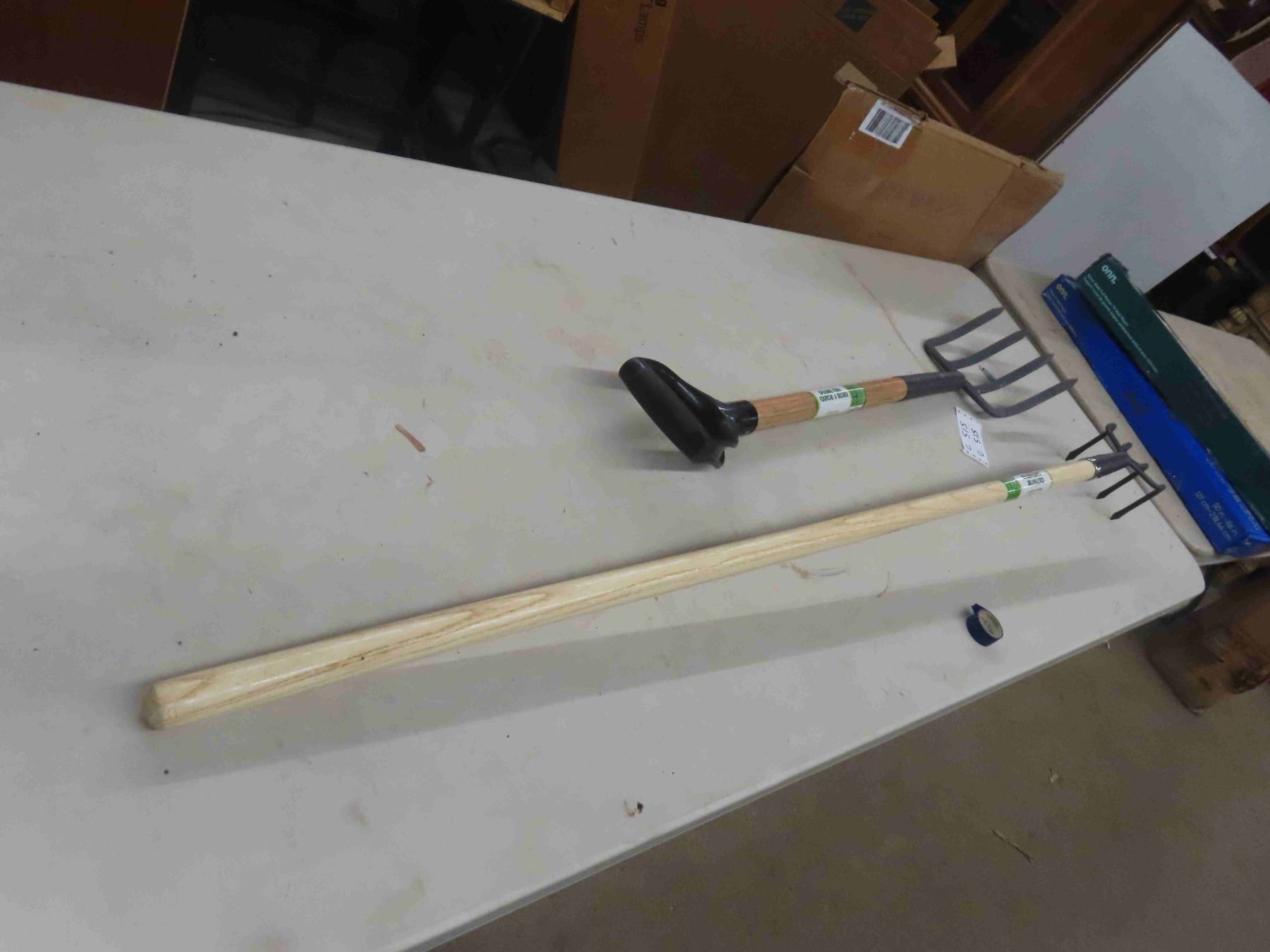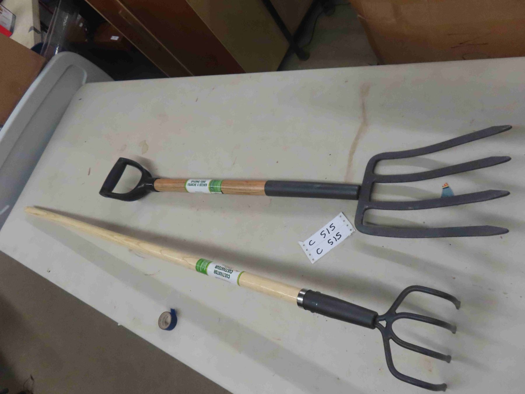 2 New Hand Yard Tools : Spading Fork, Culivator