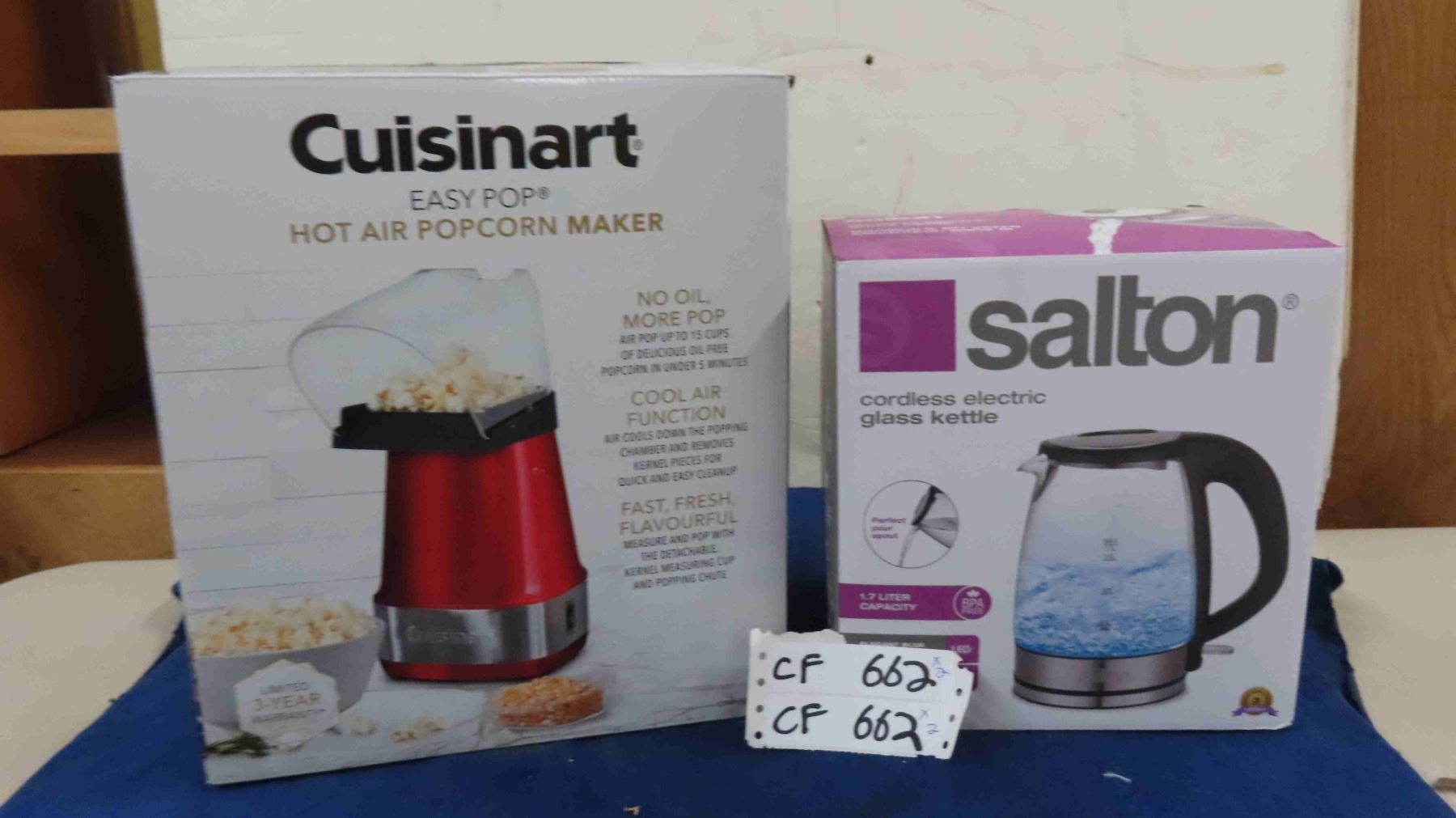 2 New Kitchen Appliances - Cuisinart Hot Air Popcorn Maker, Salton Cordless Electric Kettle