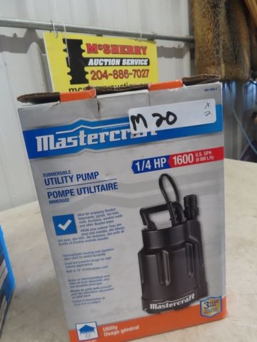 2 New Submergible Water Pumps 1) Mastercraft 1/3 HP & 1) Mastercraft 1/4 HP