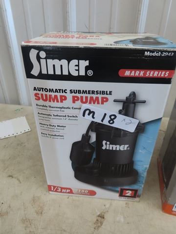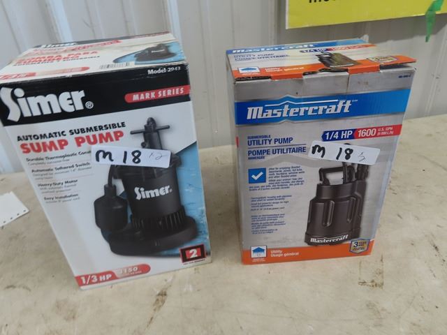 2 New Submergible Water Pumps 1) Mastercraft 1/4 HP & 1) Simer 1/3 HP