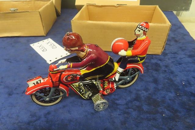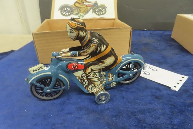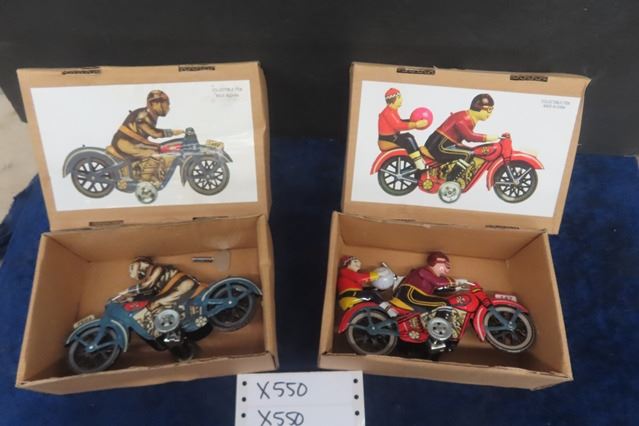 2 Newer Wind Up Pressed Tin Motorcycles- New in Box Modern Collectibles