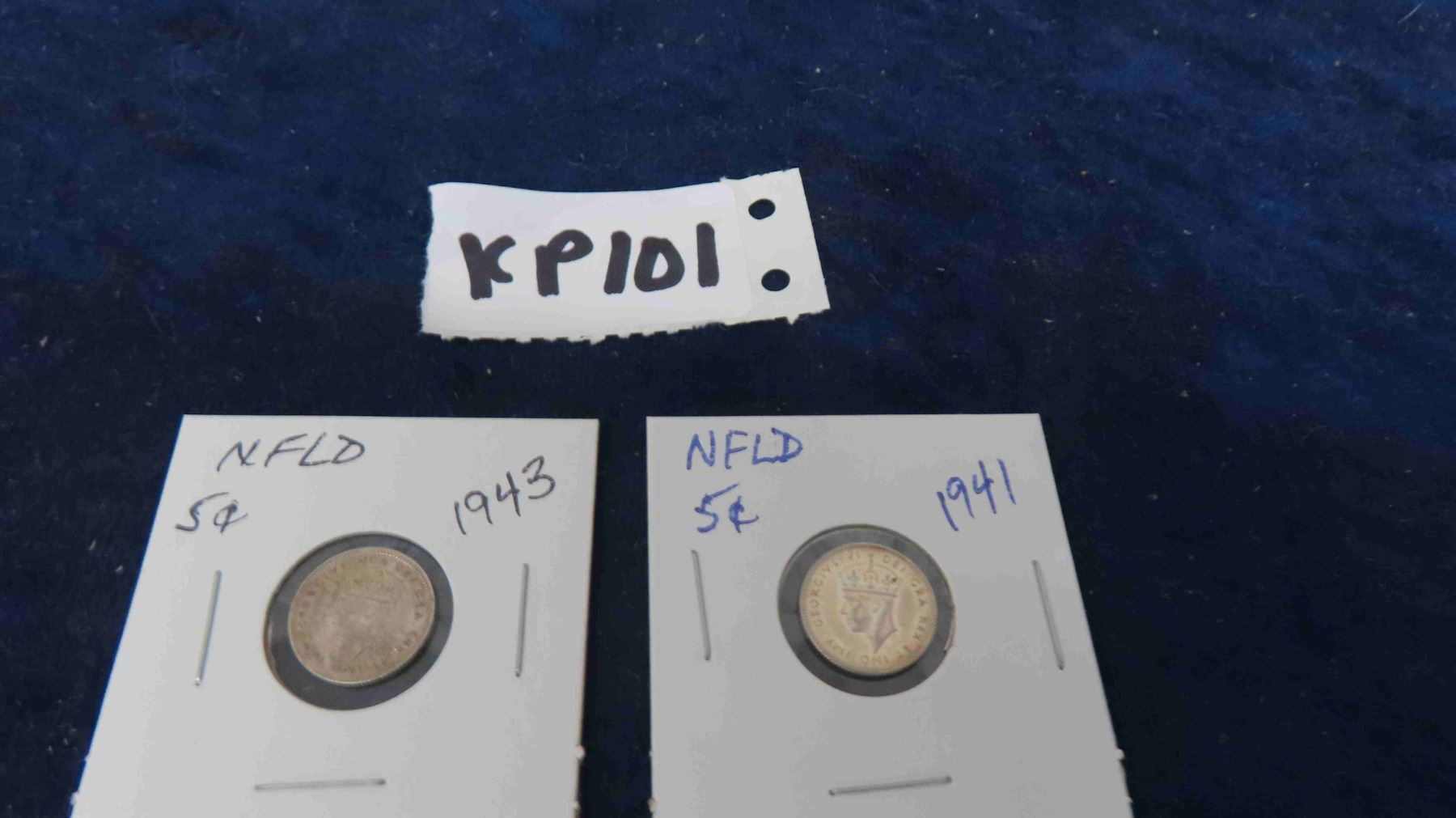 (2) Newfoundland Silver 5 Cent Coins 1941 + 1943