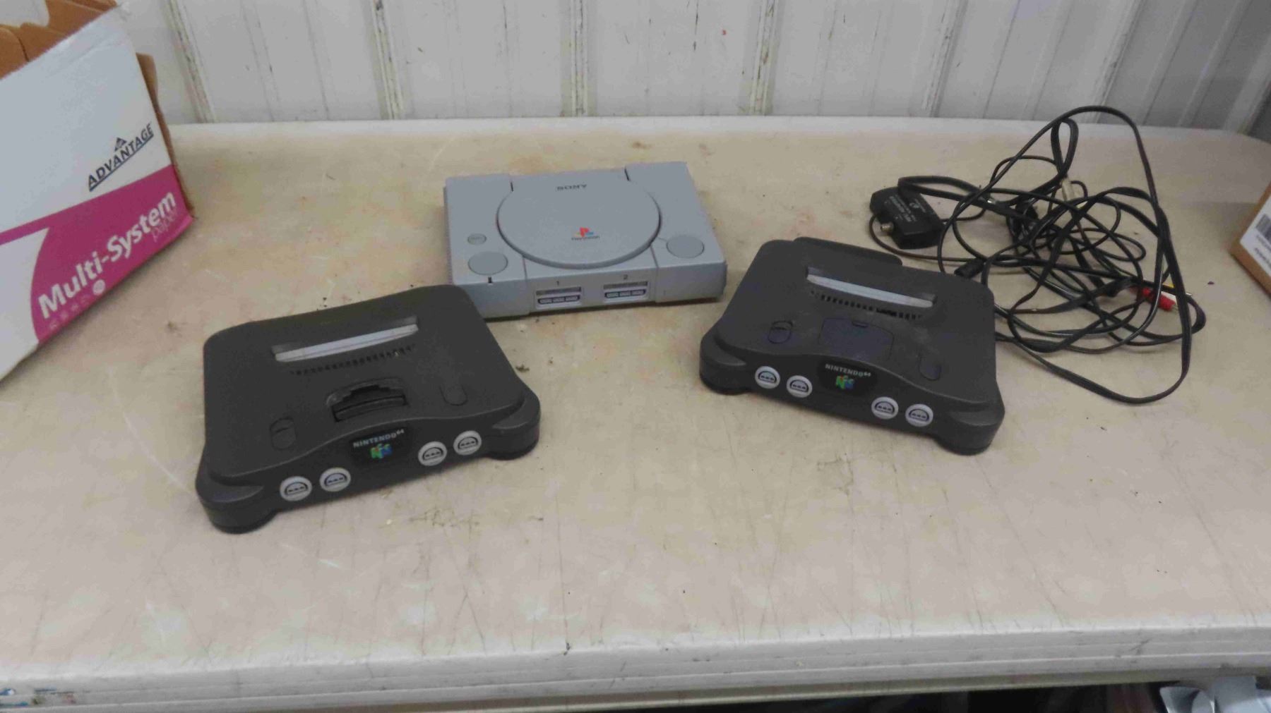 2 Nintendo 64 Consoles , 1 Power Supply , Playstation Console No Power Cord