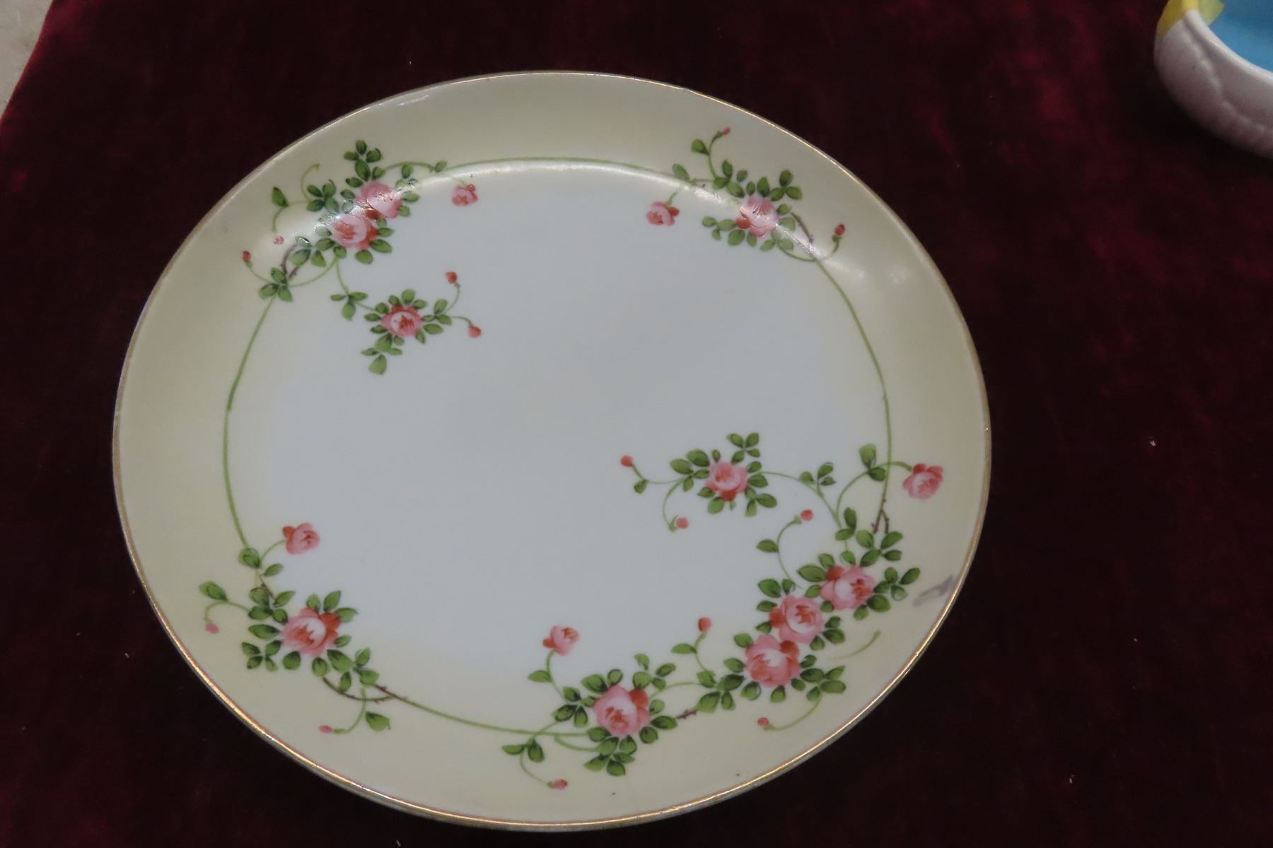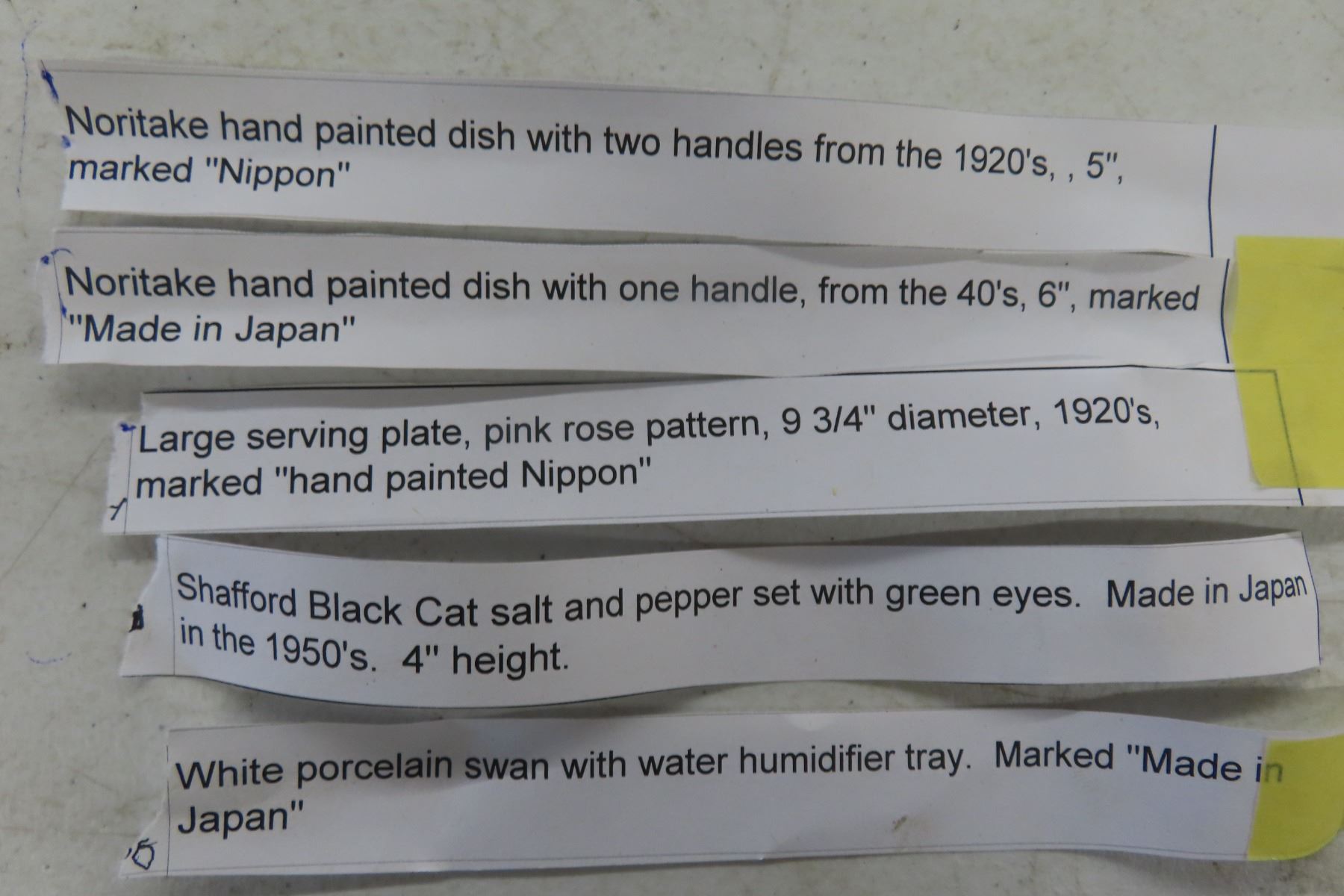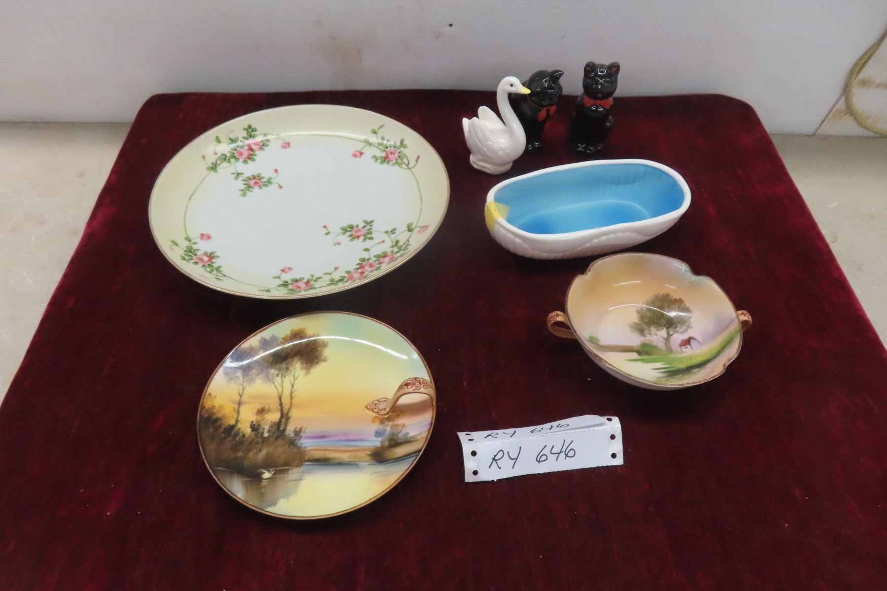 2 Noritake Hand Painted Dish, Shafford Black Cat Salt Pepper Shakers, White Porcelain Swan with Water Humidifier Tray, Serving Plate- Pink Rose Pattern Hand Painted Nippon