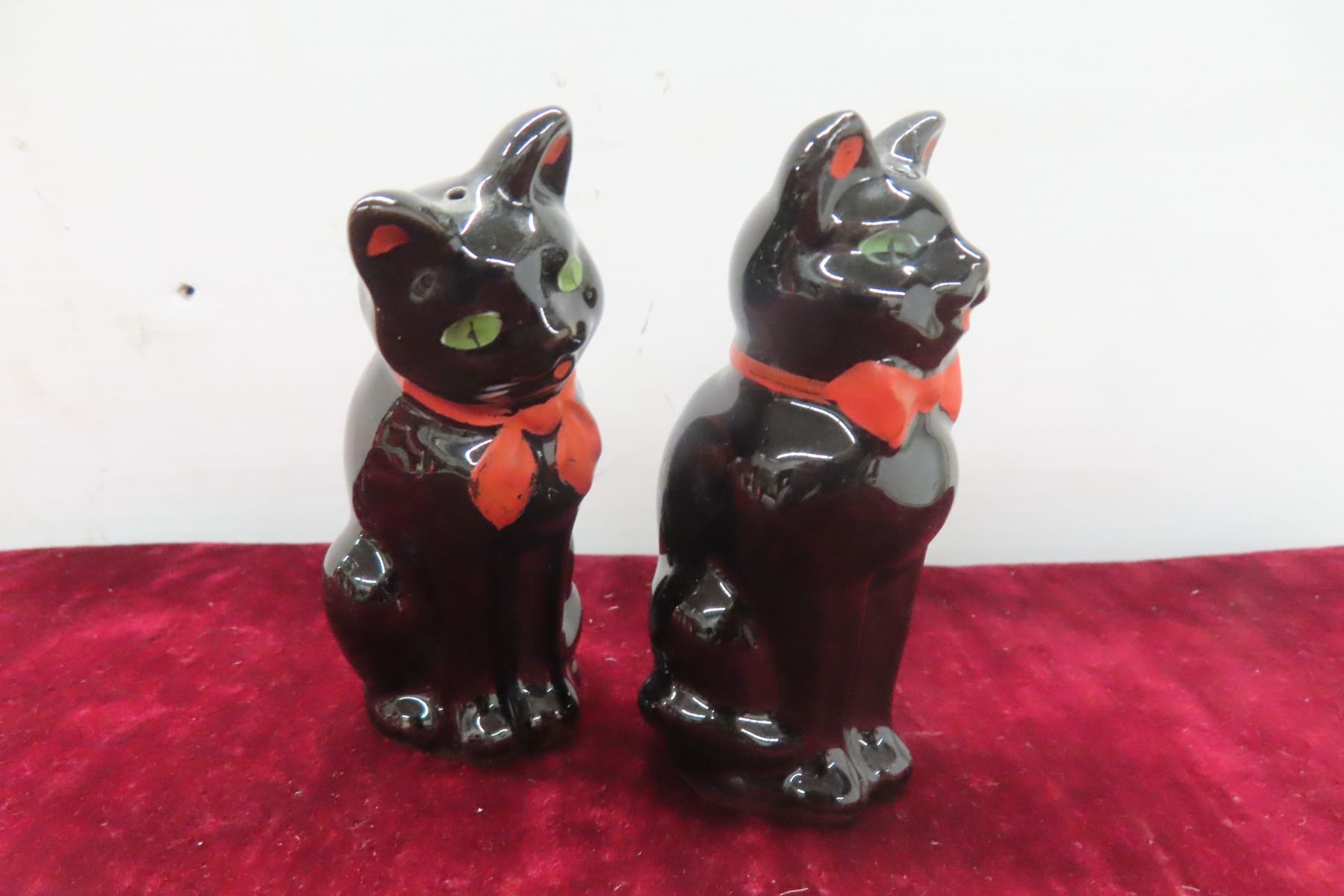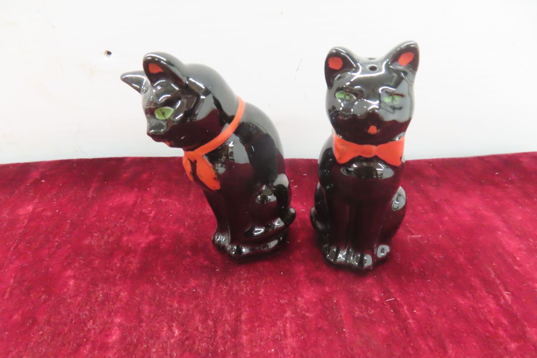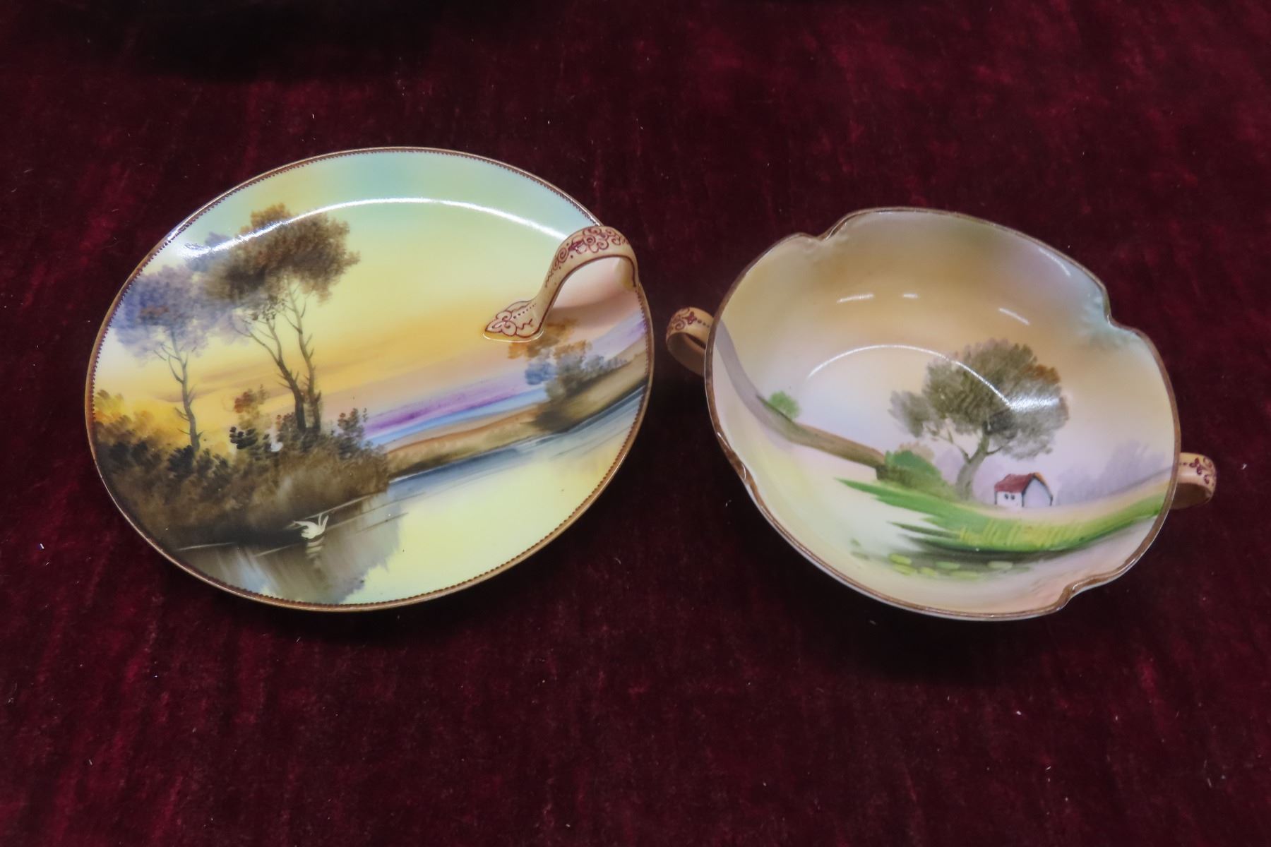 2 Noritake Hand Painted Dish, Shafford Black Cat Salt Pepper Shakers, White Porcelain Swan with Water Humidifier Tray, Serving Plate- Pink Rose Pattern Hand Painted Nippon