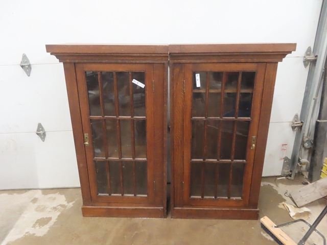 2 Oak China Cabinets 14" x55" x61" Originally 2 China Cabinets off a Fireplace- one on each side-Selling Together - Use as 1 or 2