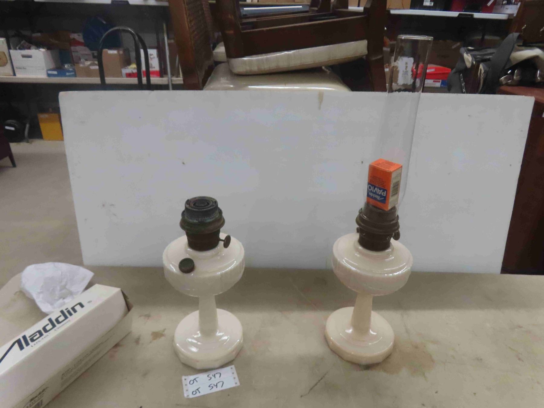 2 Oil Aladdin Lamps , 1 New Chimney with Wick