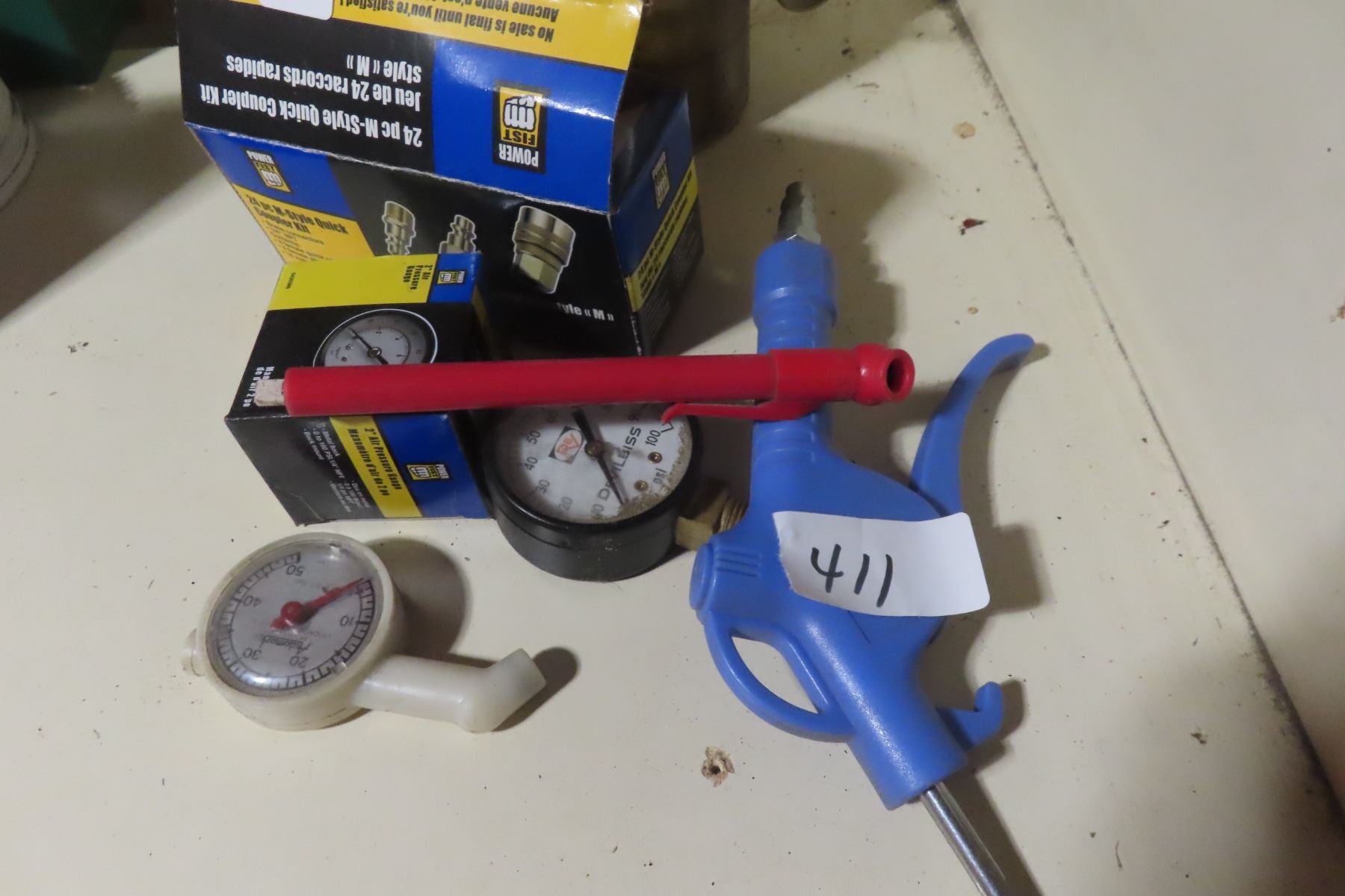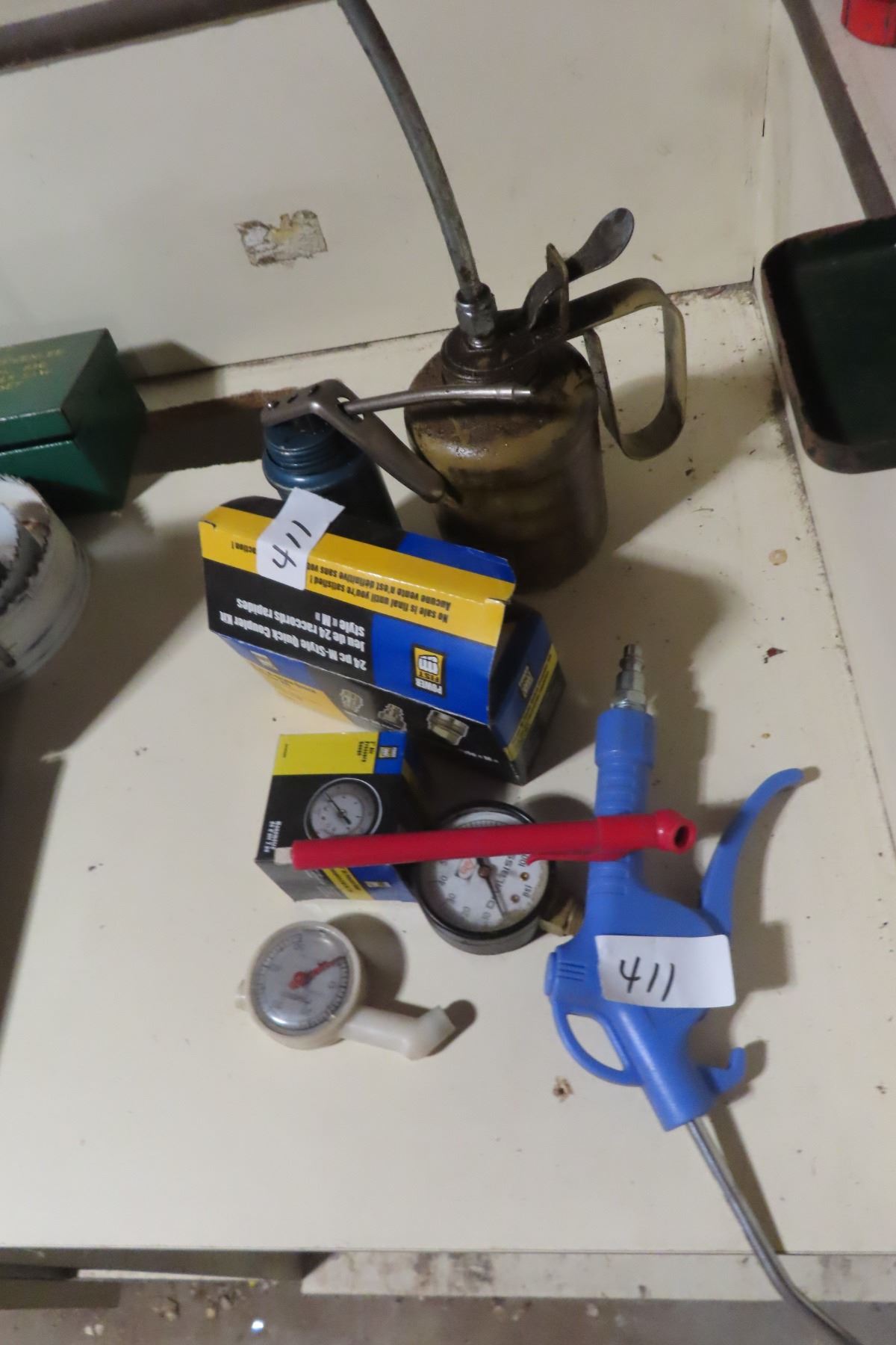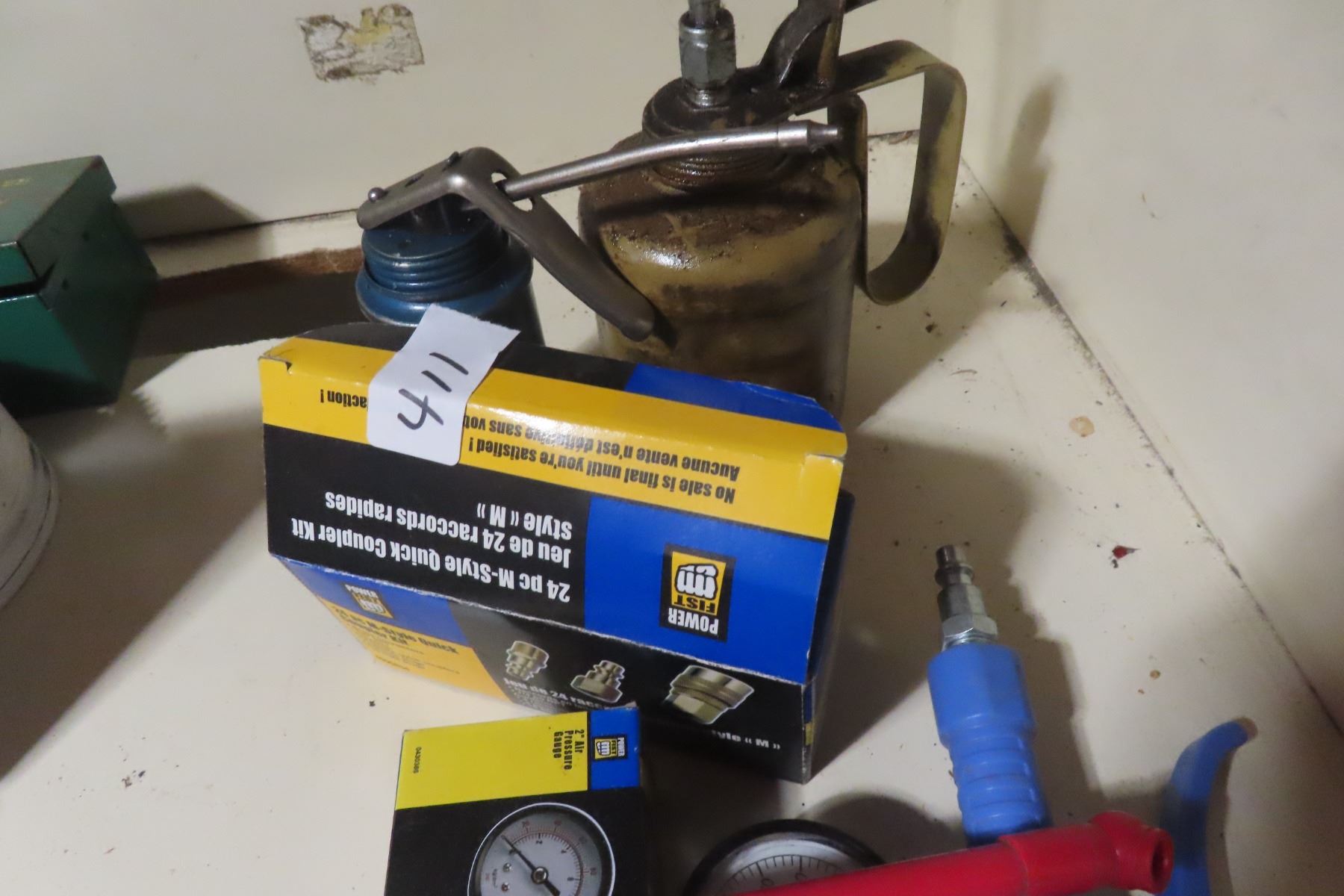 2 Oil Cans, Pressure Gauges, Air Quick Connect Fittings