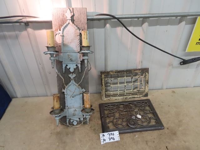 2 Old Cast Light Fixtures, & 2 Register Covers