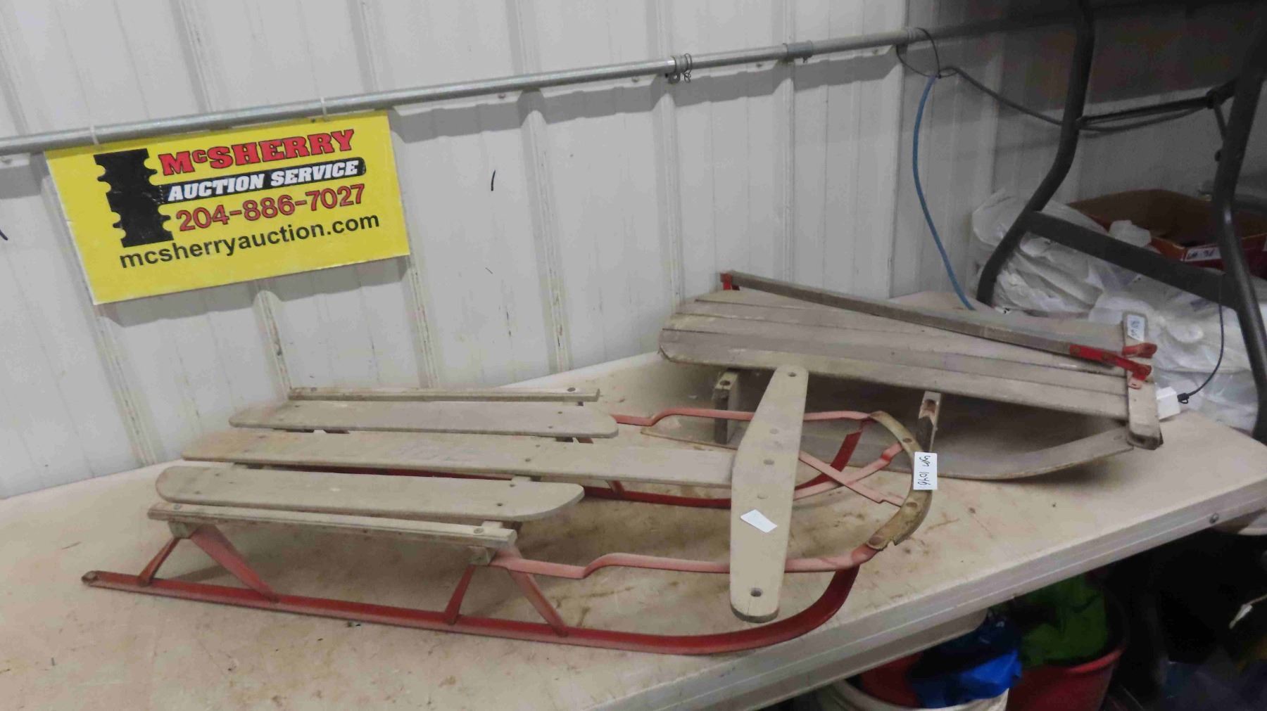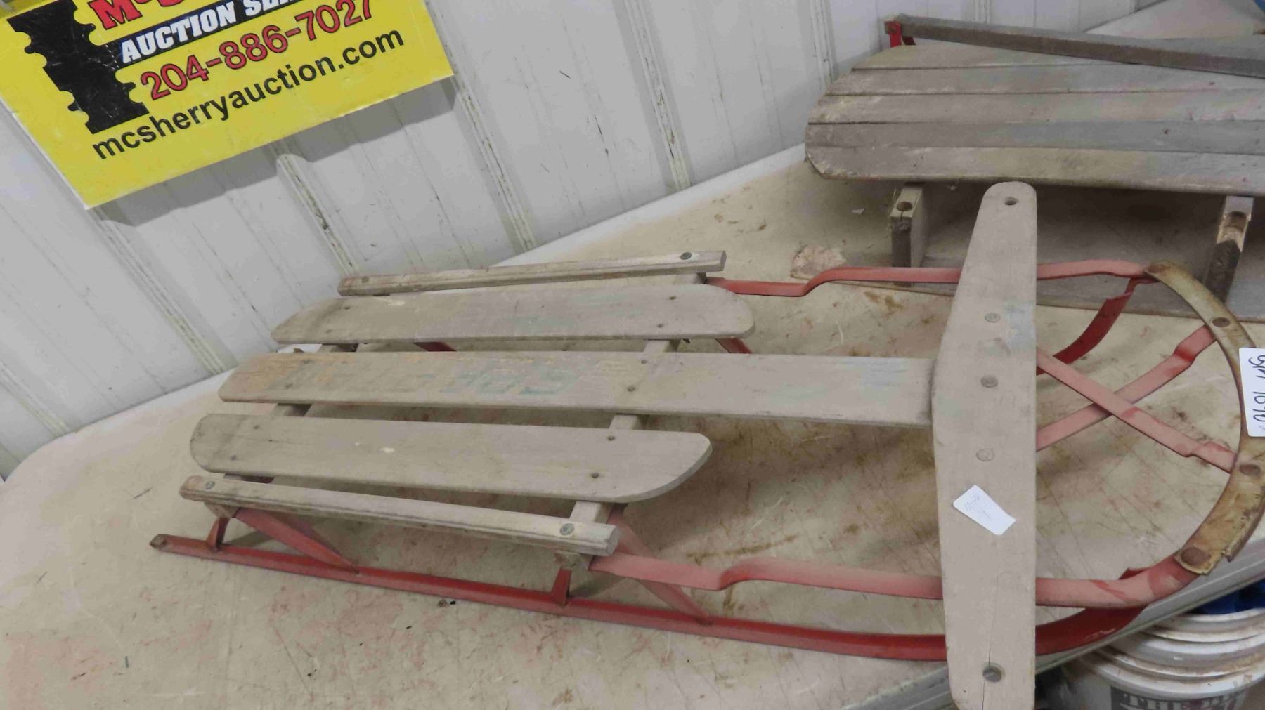 2 Old Sleighs : 1 Sparton , 1 Older with Wood Runner