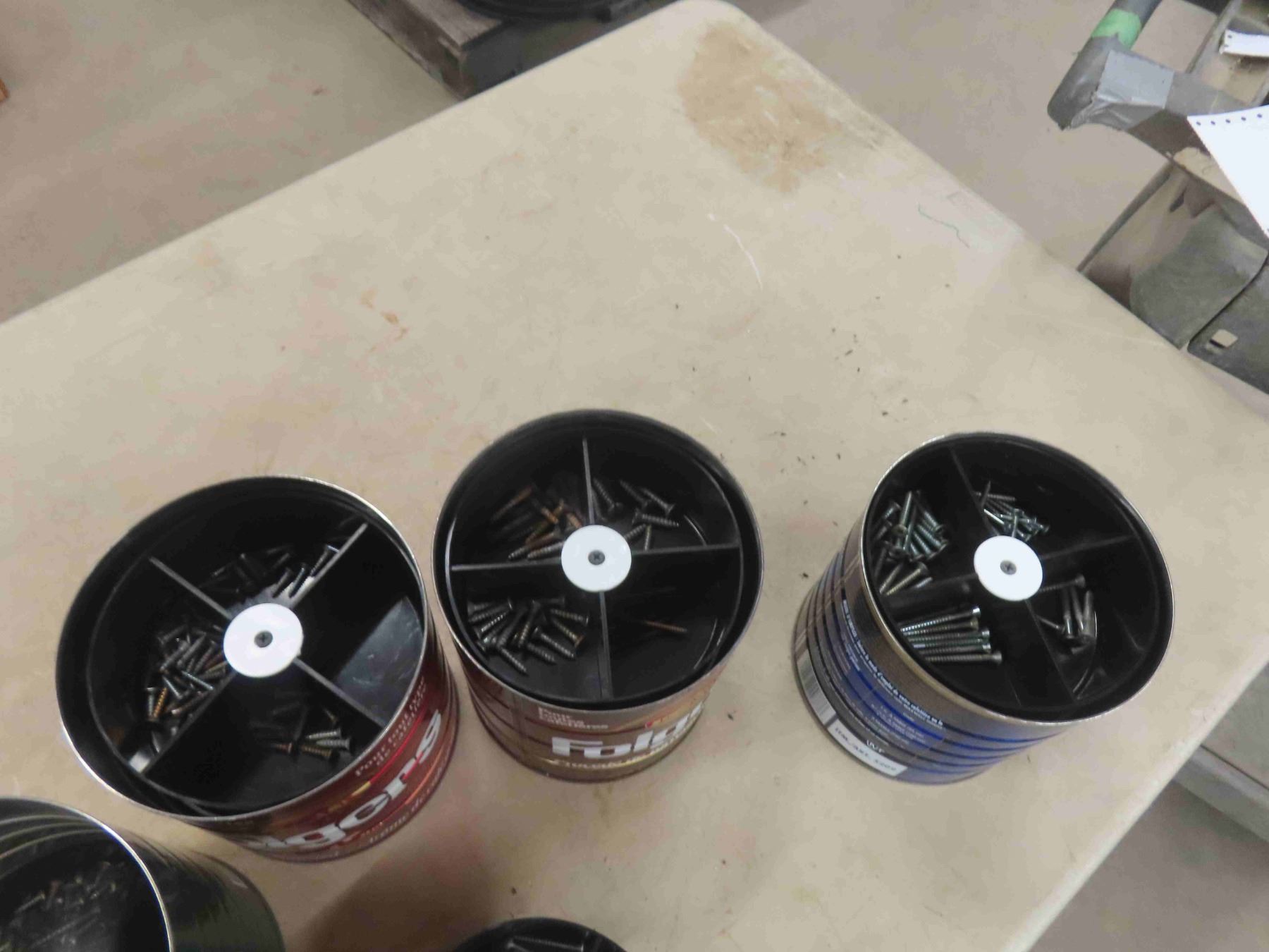 2 Organizers Full of Small Hardware; Screws, Nails + 4 Tins with 3 Tier Trays of Screws