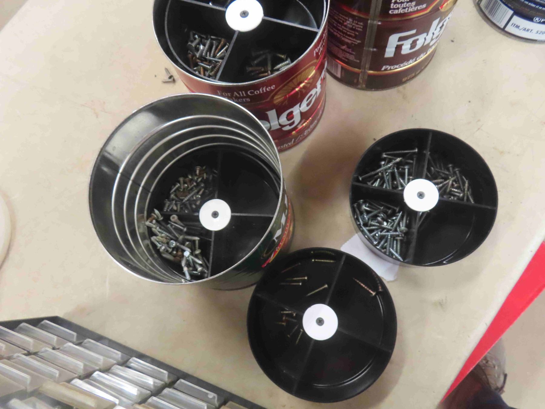 2 Organizers Full of Small Hardware; Screws, Nails + 4 Tins with 3 Tier Trays of