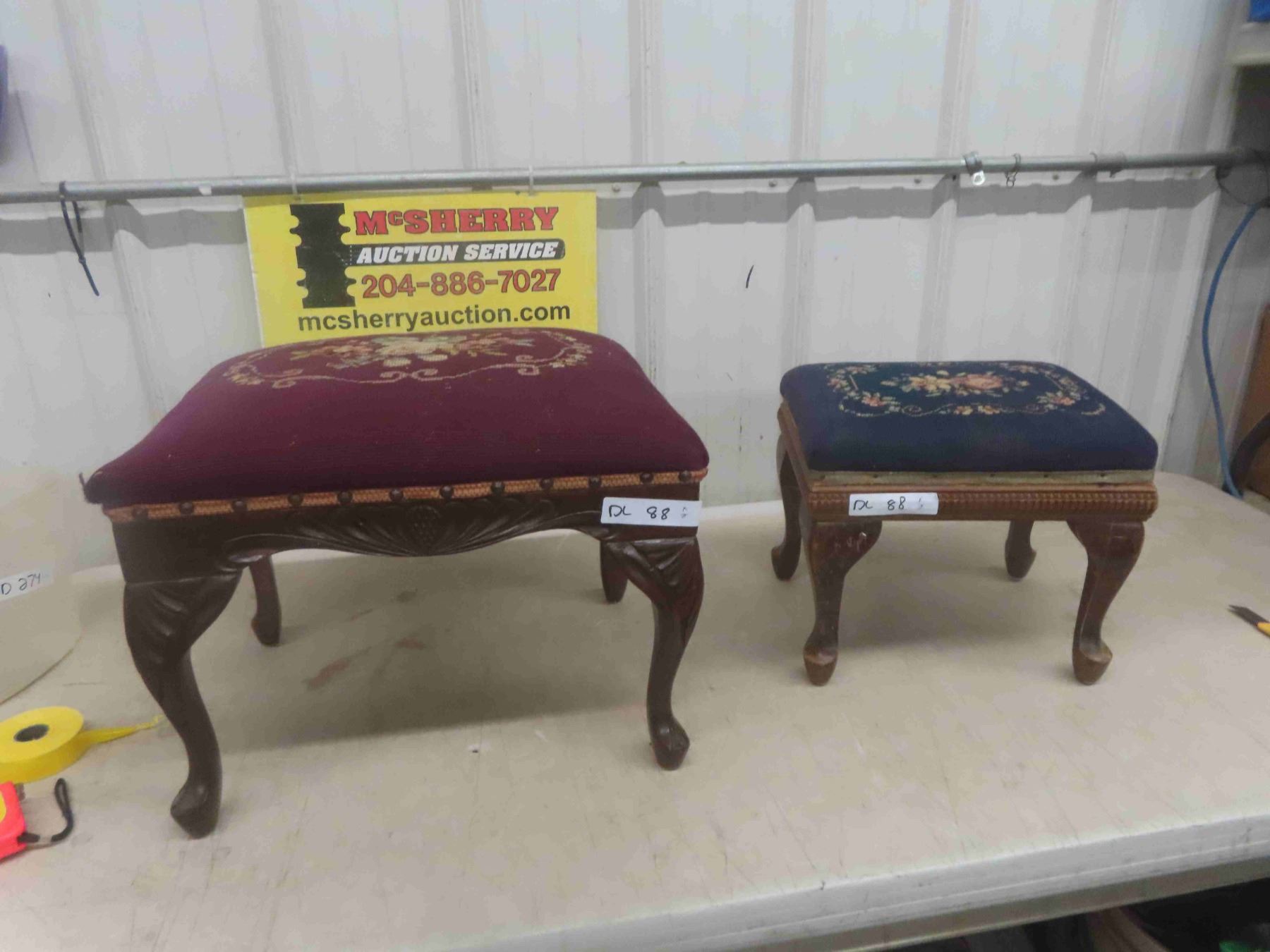 2 Ottomans with Tapestry 14'' x 19'' x 14'' & 12'' x 13'' x 11''
