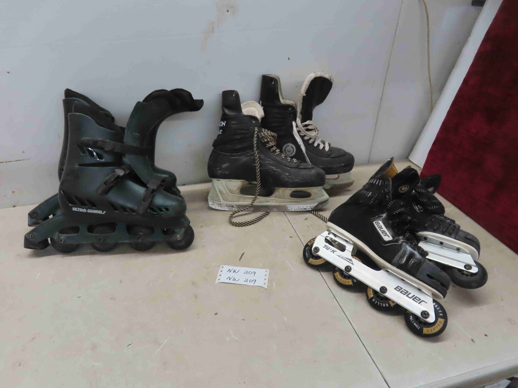 2 Pairs of Roller Blades No Size Listed, Hockey Skates Size 10.5