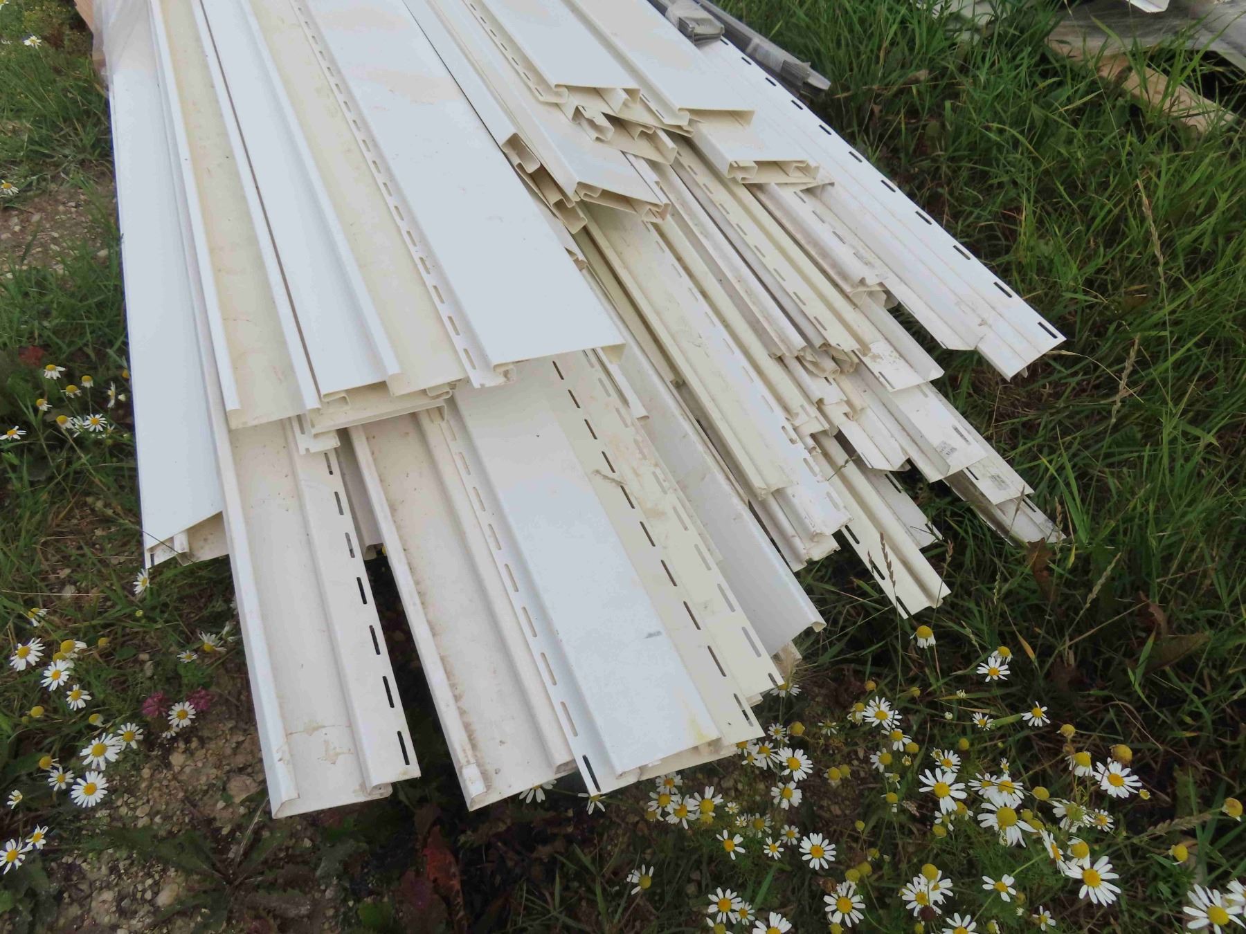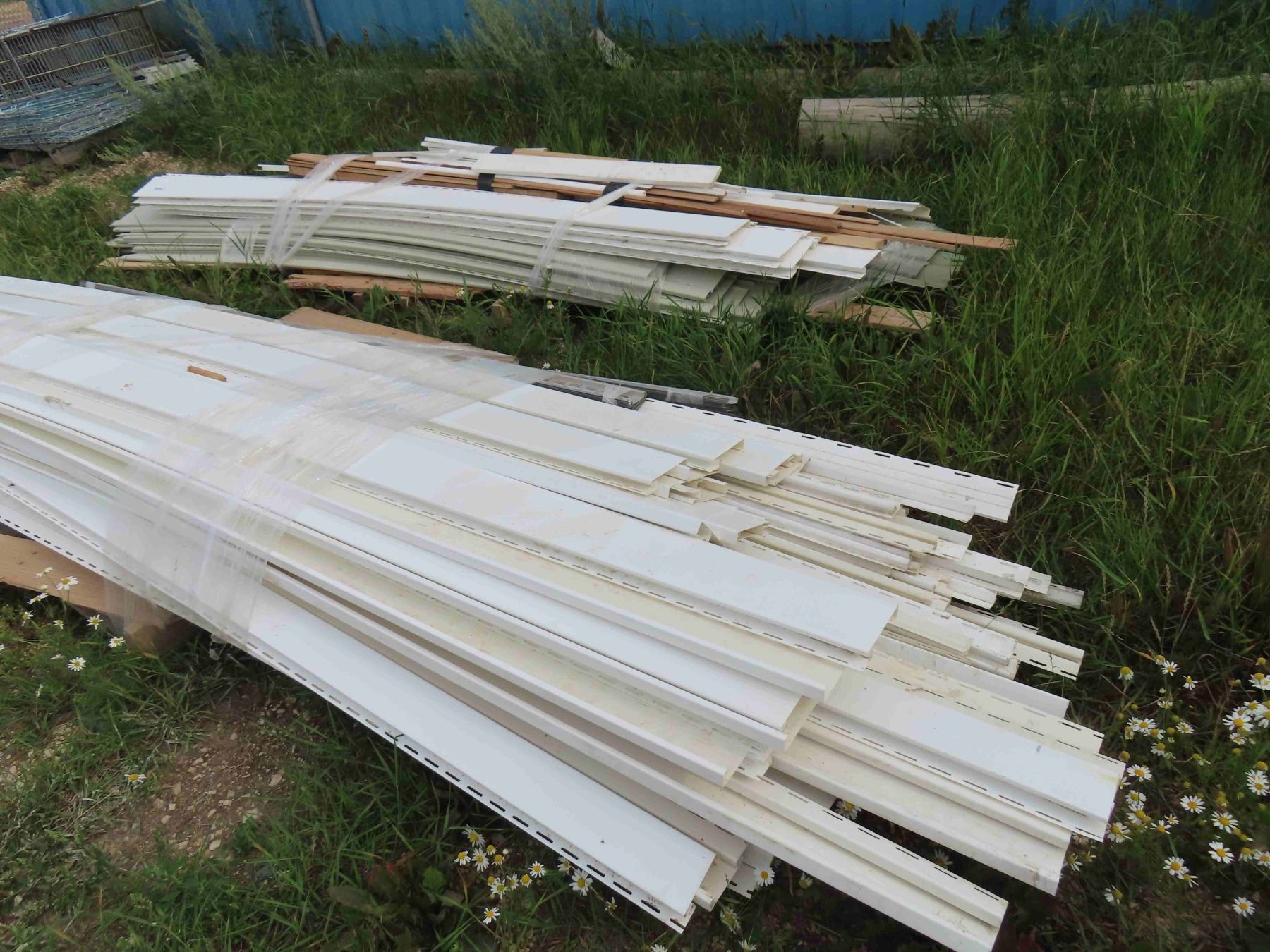 2 Pallets of Vinyl Siding - Mostly White, Some Light Green - up to 12' Lengths