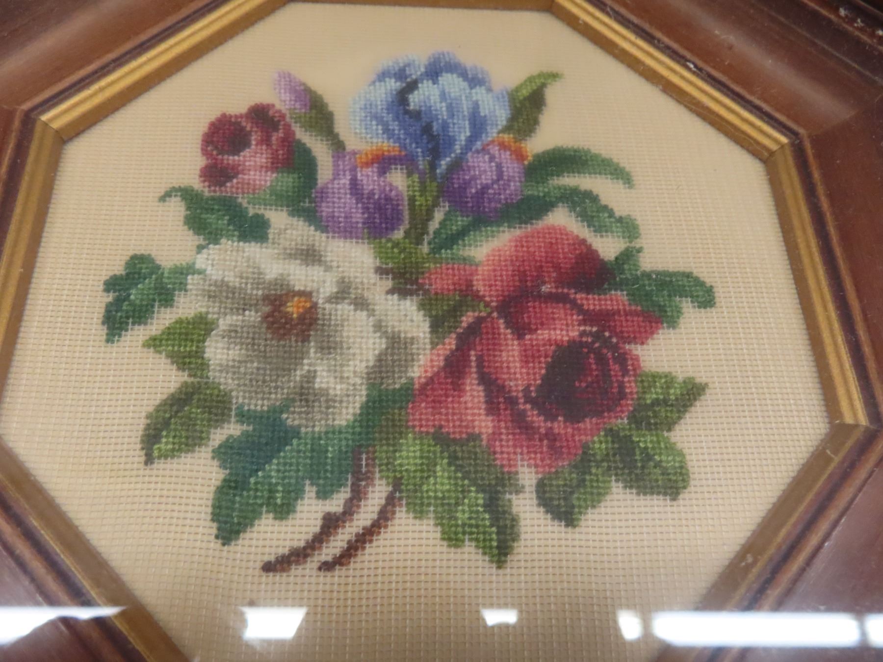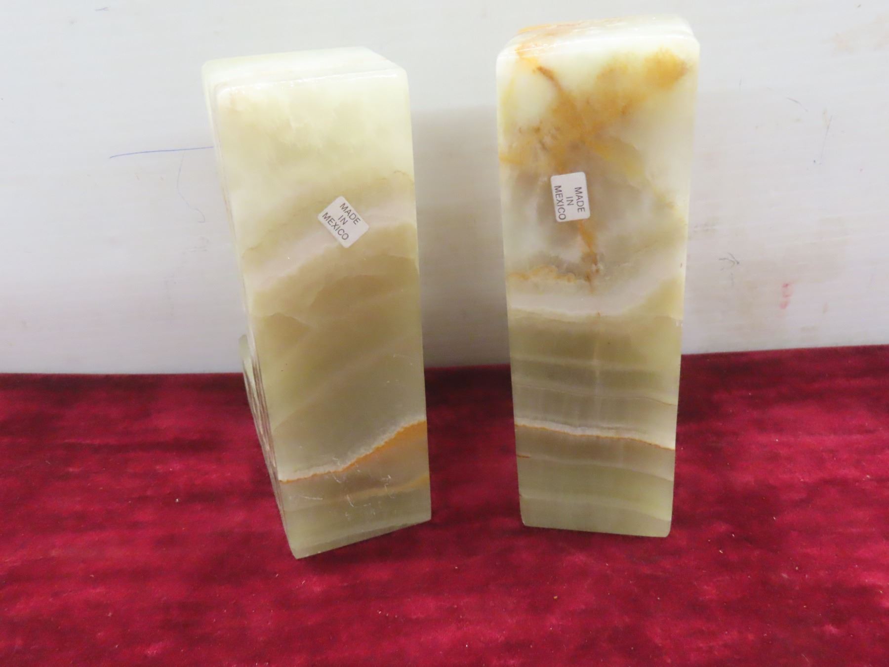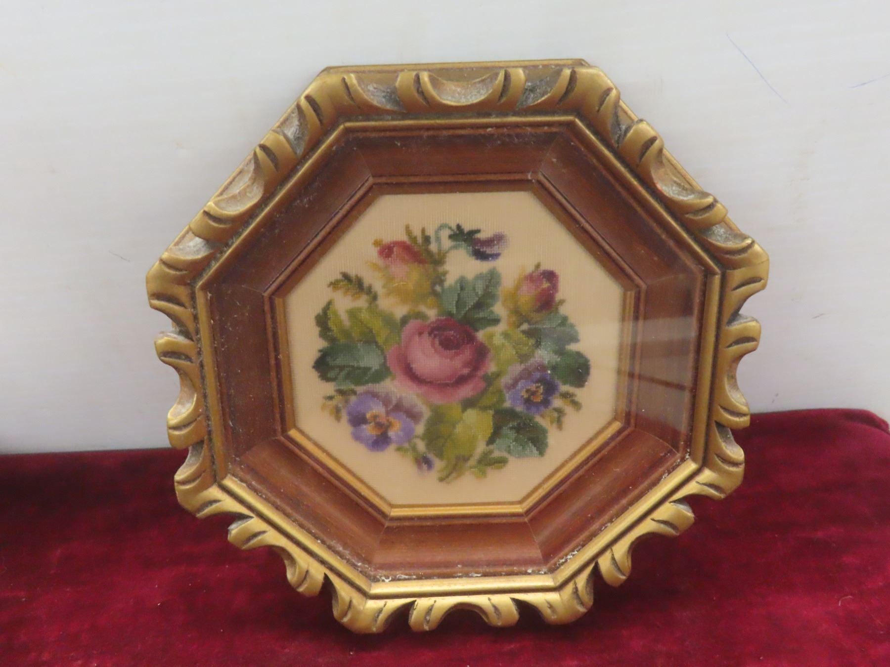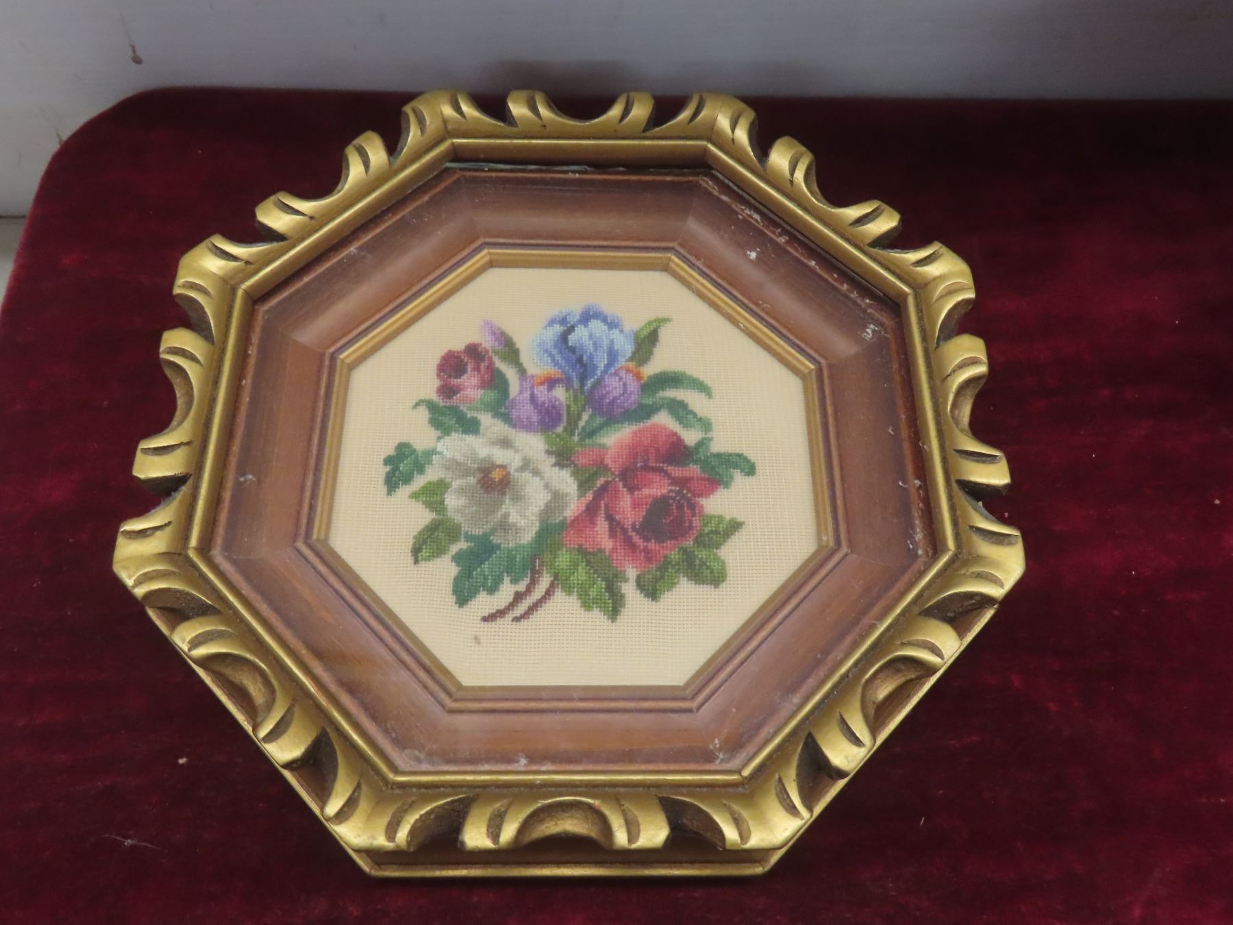 2 Petit Point Pictures, 7 1/2" X 8", 2 Marble Style Bookends, 6" Tall