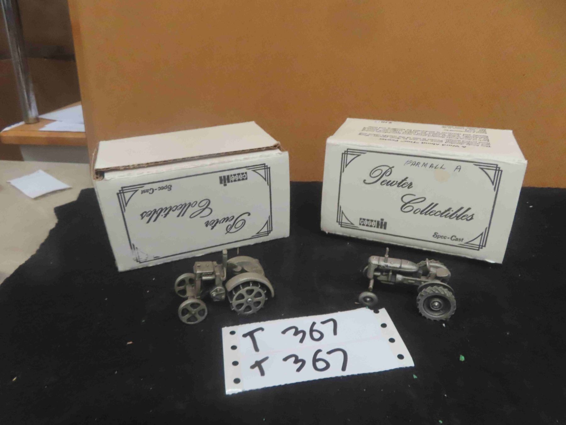2 Pewter Tractor with Boxes 1:43 Scale ; Farmall A + Case