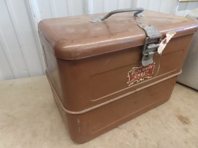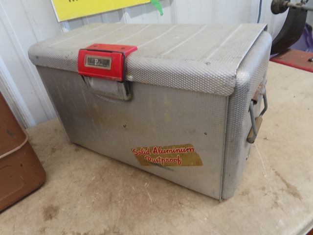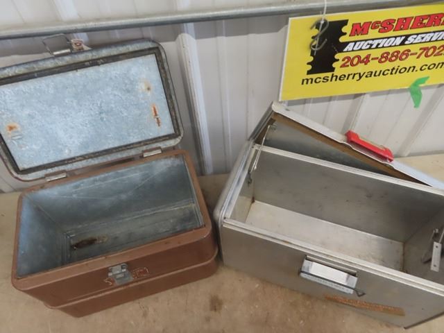 2 Picnic Coolers 1) Metal Little Brown Chest 1)Alum Polaron